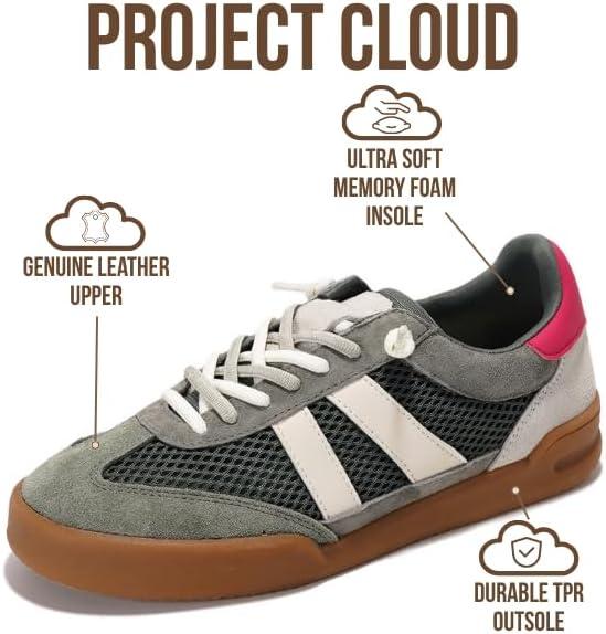 Project Cloud Genuine Leather Casual Sneakers for Women – Memory Foam Insoles Lace-Up Womens Shoes & Lightweight Women’s Fashion Sneakers – Non-Slip Shoes for Women Footwear (Verdict)(Olive Suede)