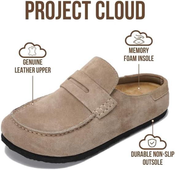 Project Cloud Genuine Leather Clogs for Women – Memory Foam Insole Womens Clogs Non-Slip Outsole Mules for Women Footwear – Women’s Mules & Clogs Fall Shoes (Haven)(Light Beige Suede)