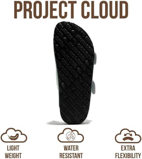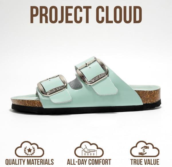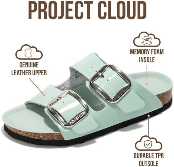 Project Cloud Genuine Leather Flat Sandals for Women 2025 Comfortable Beach Essentials Womens Sandals Memory Foam Vacation Essentials Slides for Women Footwear (Santorini)(Blue Patent)