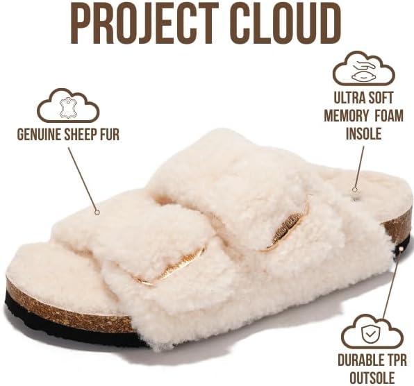 Project Cloud Genuine Leather Flat Sandals for Women 2025 Comfortable Beach Essentials Womens Sandals Memory Foam Vacation Essentials Slides for Women Footwear (Santorini)(Off-white)