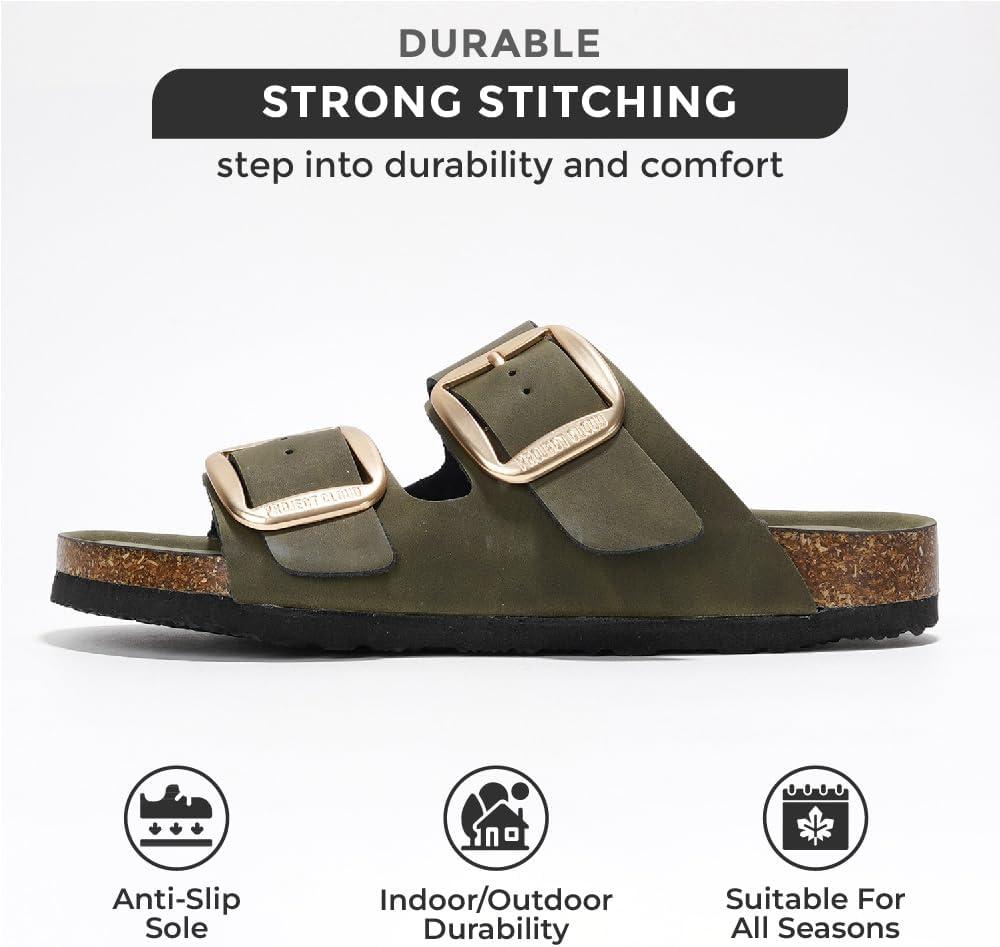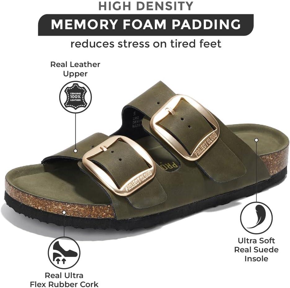 Project Cloud Genuine Leather Flat Sandals for Women 2025 Comfortable Beach Essentials Womens Sandals Memory Foam Vacation Essentials Slides for Women Footwear (Santorini)(Olive)
