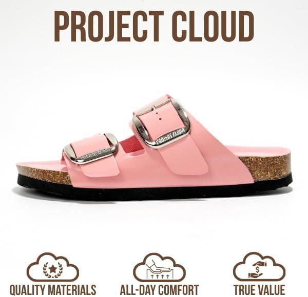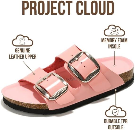 Project Cloud Genuine Leather Flat Sandals for Women 2025 Comfortable Beach Essentials Womens Sandals Memory Foam Vacation Essentials Slides for Women Footwear (Santorini)(Pink Patent)