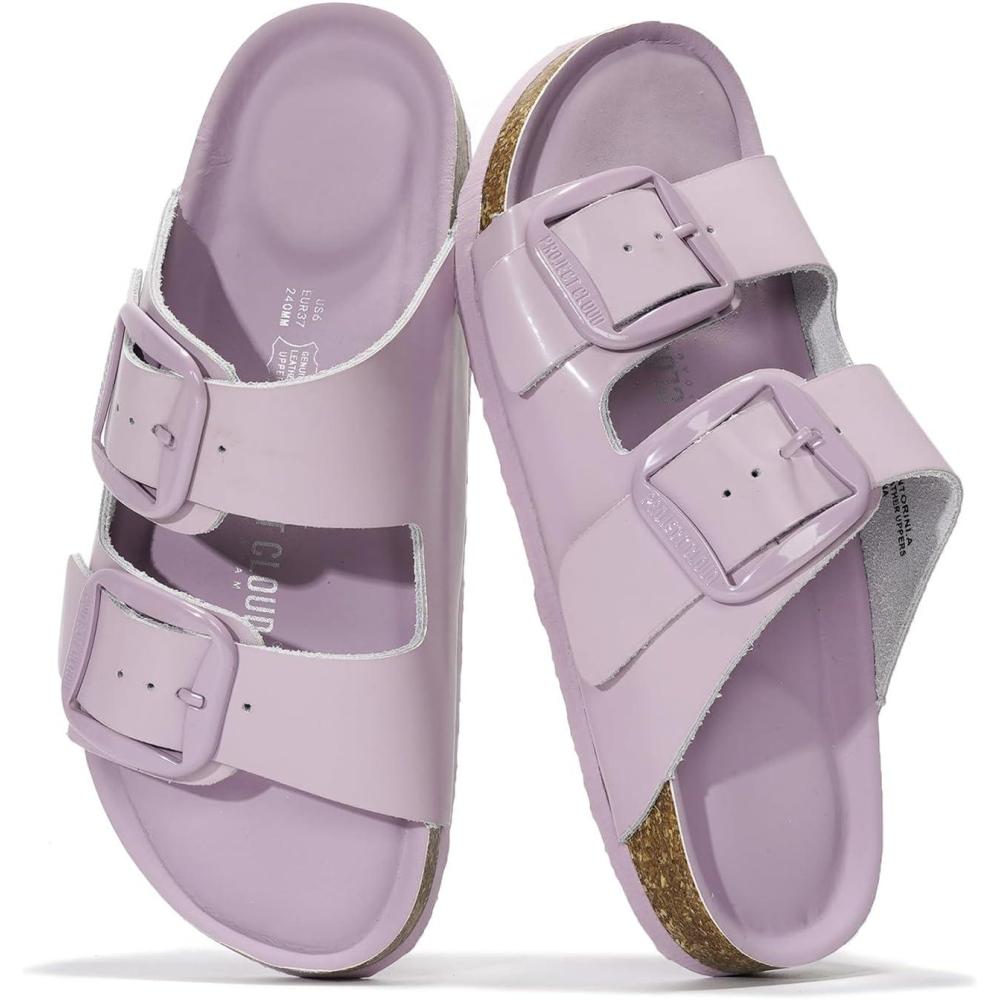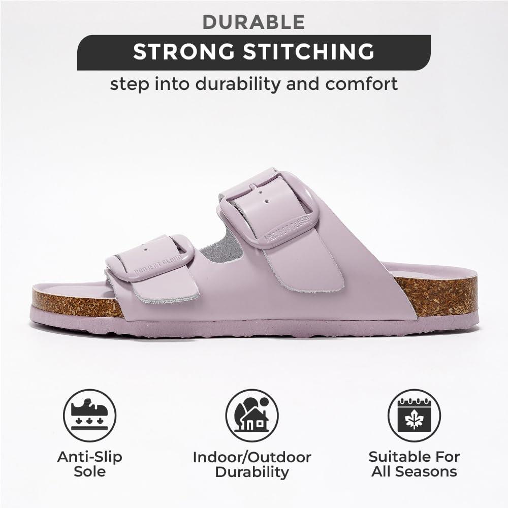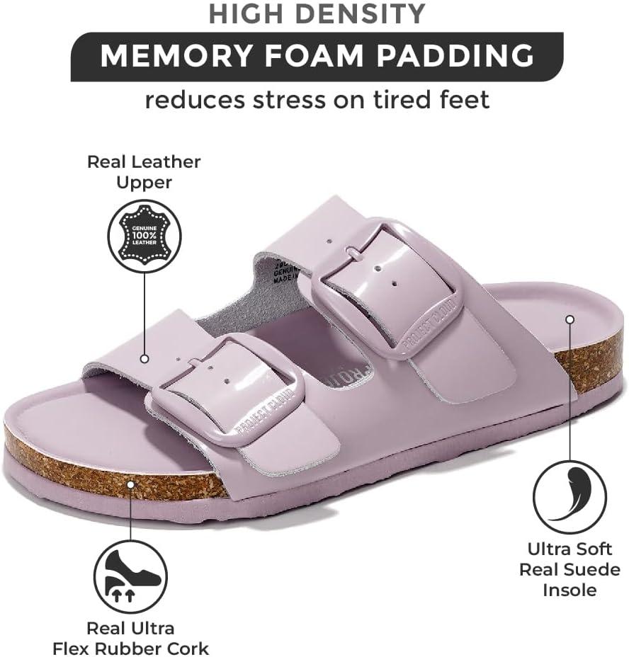Project Cloud Genuine Leather Flat Sandals for Women 2025 Comfortable Beach Essentials Womens Sandals Memory Foam Vacation Essentials Slides for Women Footwear (Santorini)(Purple)
