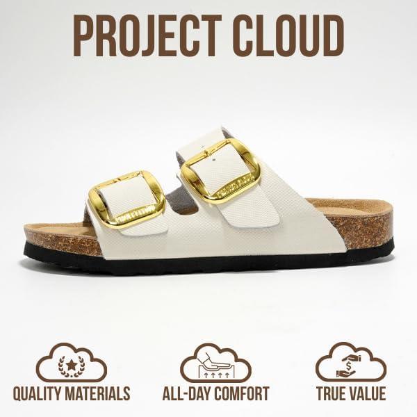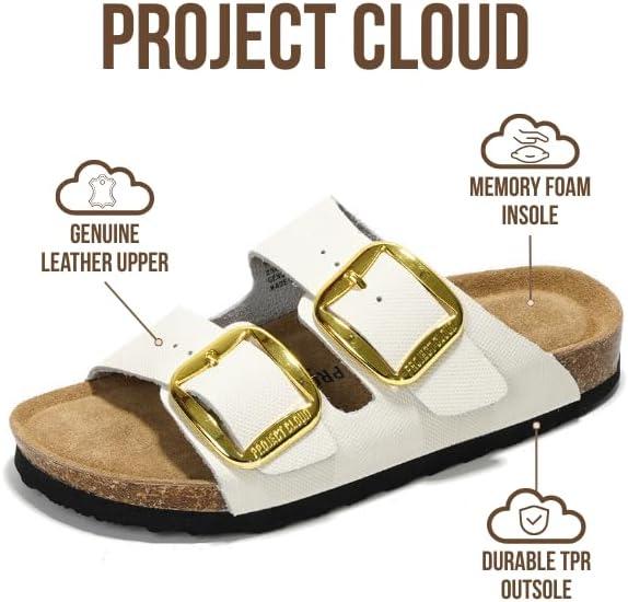 Project Cloud Genuine Leather Flat Sandals for Women 2025 Comfortable Beach Essentials Womens Sandals Memory Foam Vacation Essentials Slides for Women Footwear (Santorini)(White Leather)