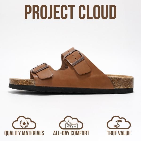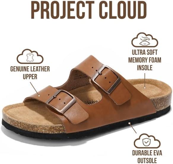 Project Cloud Genuine Leather Flat Sandals Women 2025 Beach Essentials Womens Sandals Memory Foam Vacation Essentials Slides for Women Footwear (Venita)(Cognac)