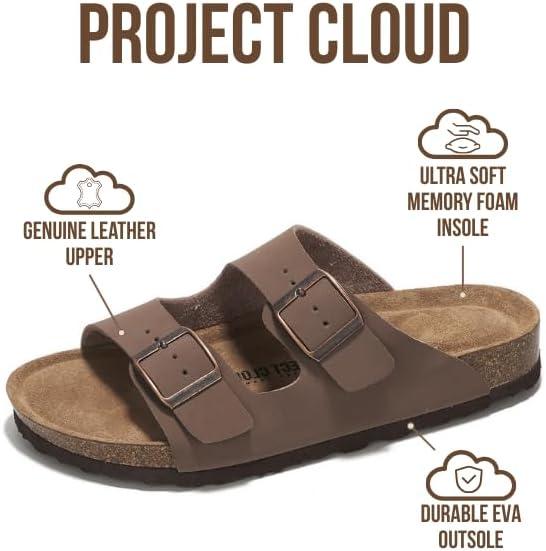 Project Cloud Genuine Leather Flat Sandals Women 2025 Beach Essentials Womens Sandals Memory Foam Vacation Essentials Slides for Women Footwear (Venita)(Tan)