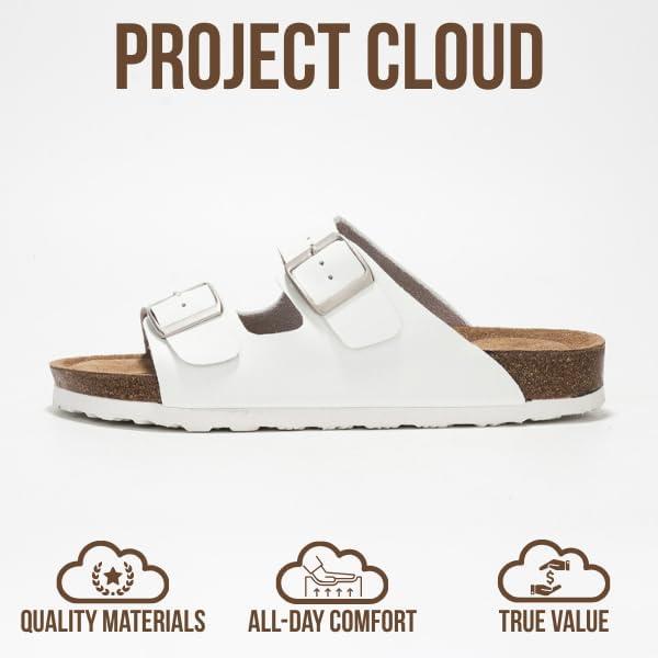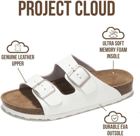 Project Cloud Genuine Leather Flat Sandals Women 2025 Beach Essentials Womens Sandals Memory Foam Vacation Essentials Slides for Women Footwear (Venita)(White)