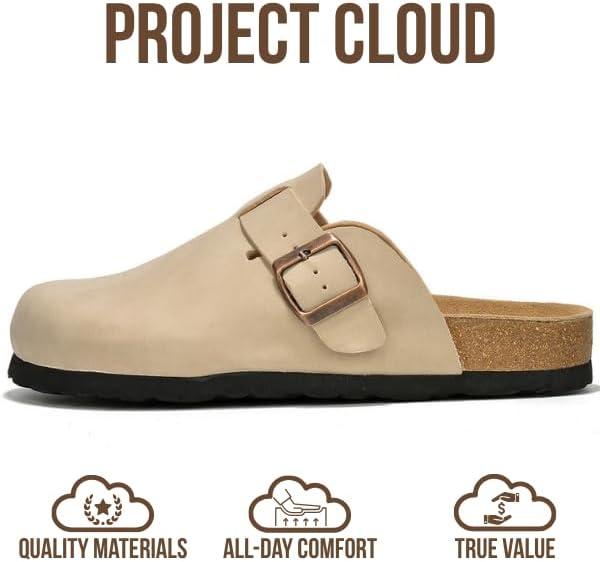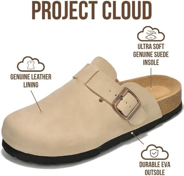 Project Cloud Genuine Leather Footbed Clogs for Women – Memory Foam Arch Support Slippers for Women – Trendy Slip-ons Women’s Mules & Clogs Sandals (Benton)(Beige)