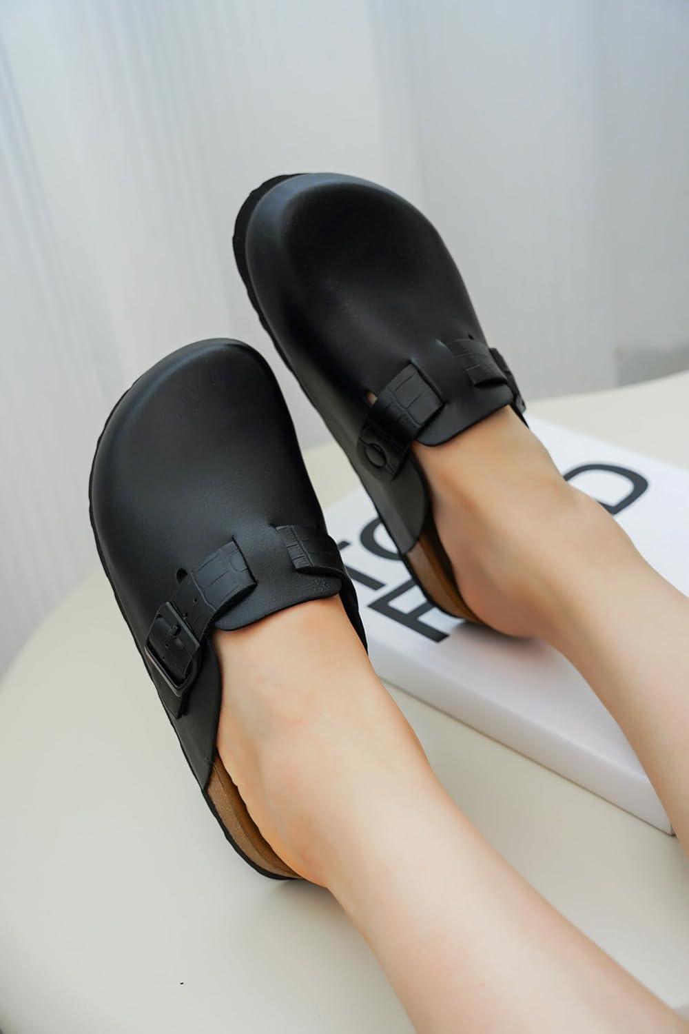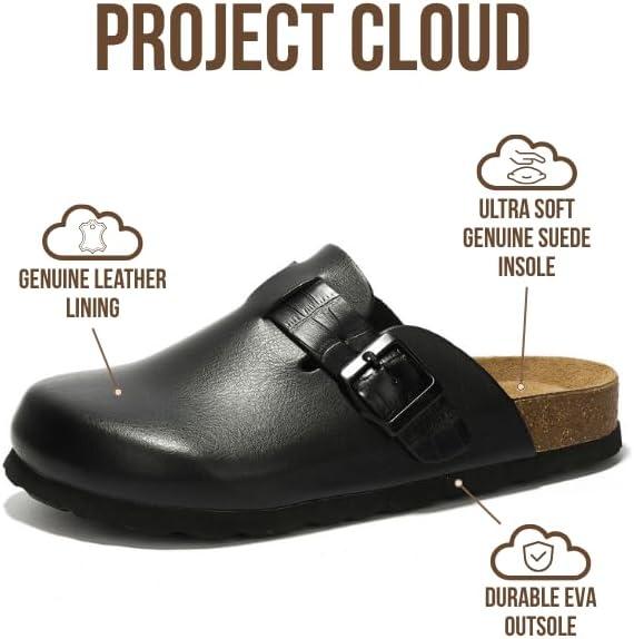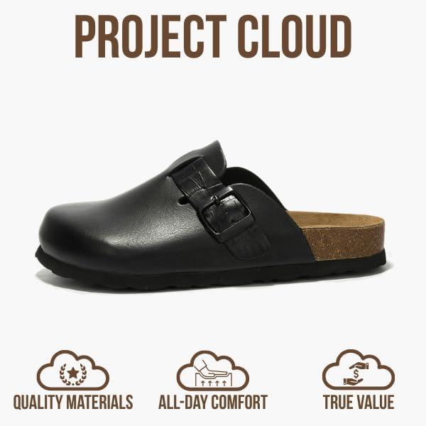 Project Cloud Genuine Leather Footbed Clogs for Women – Memory Foam Arch Support Slippers for Women – Trendy Slip-ons Women’s Mules & Clogs Sandals (Benton)(Black Croco)