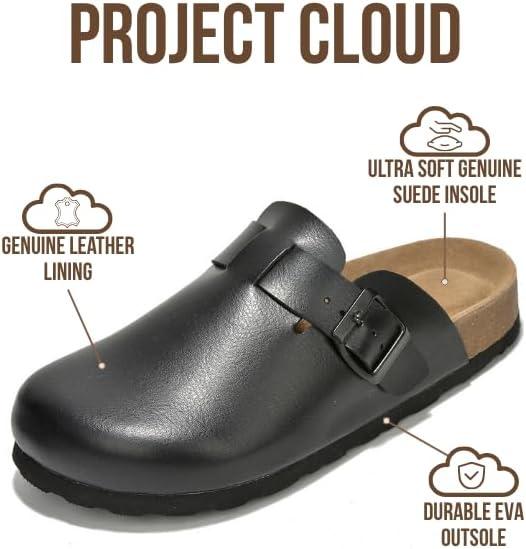 Project Cloud Genuine Leather Footbed Clogs for Women – Memory Foam Arch Support Slippers for Women – Trendy Slip-ons Women’s Mules & Clogs Sandals (Benton)(Black)