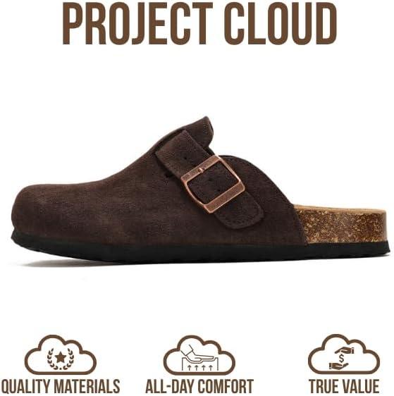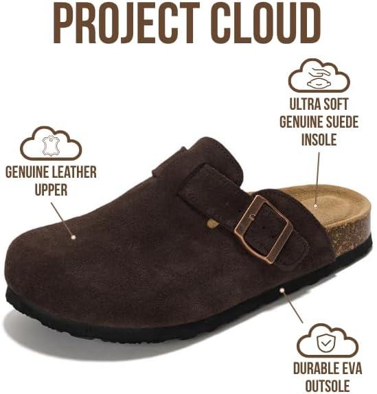 Project Cloud Genuine Leather Footbed Clogs for Women – Memory Foam Arch Support Slippers for Women – Trendy Slip-ons Women’s Mules & Clogs Sandals (Benton)(Choco Brown Suede)