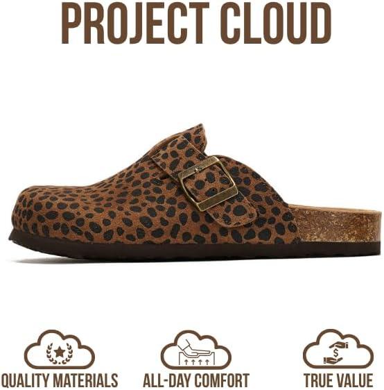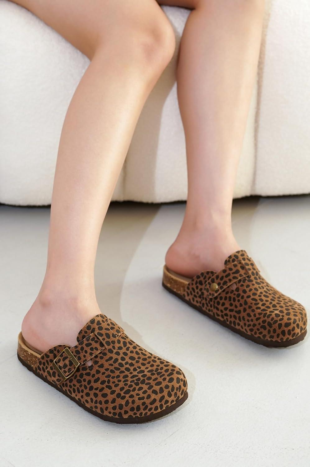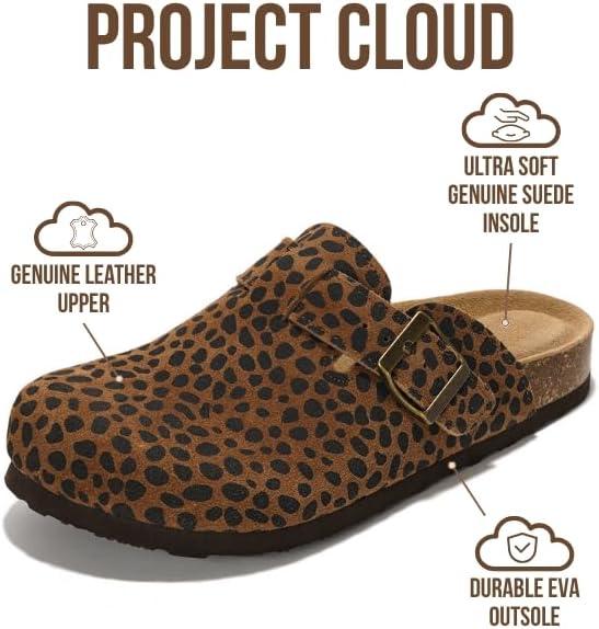 Project Cloud Genuine Leather Footbed Clogs for Women – Memory Foam Arch Support Slippers for Women – Trendy Slip-ons Women’s Mules & Clogs Sandals (Benton)(Dark Brown Leopard)