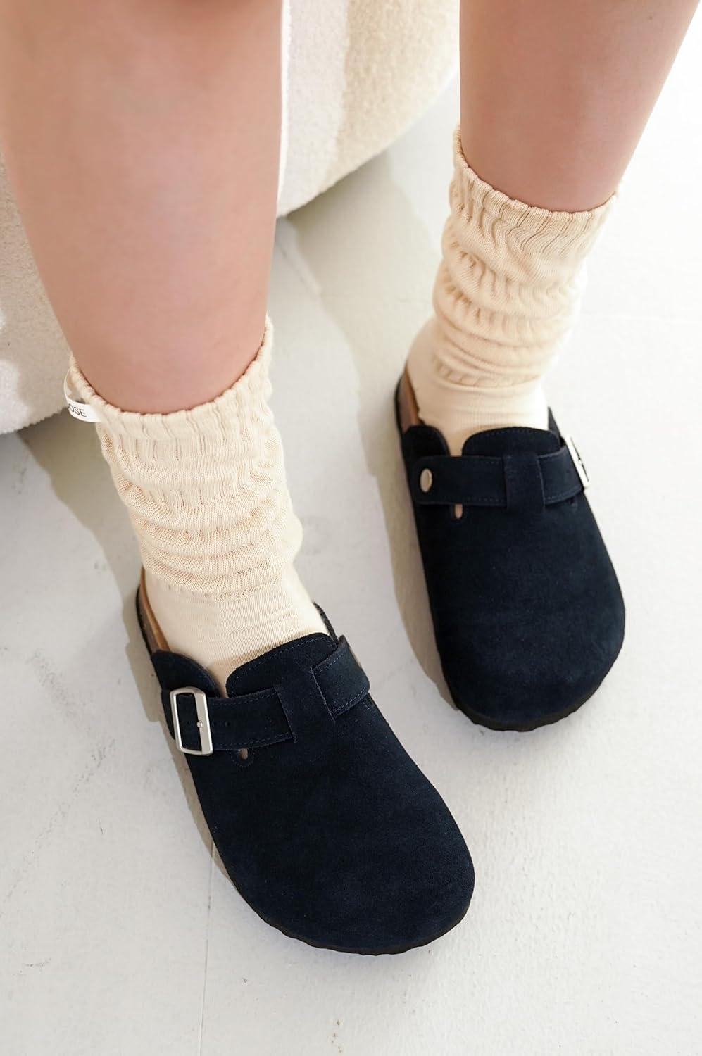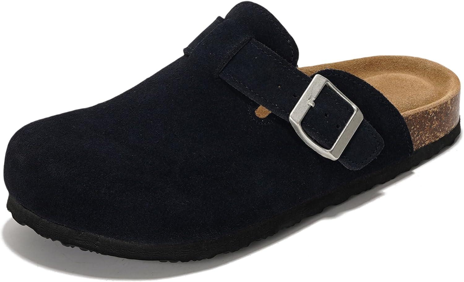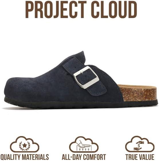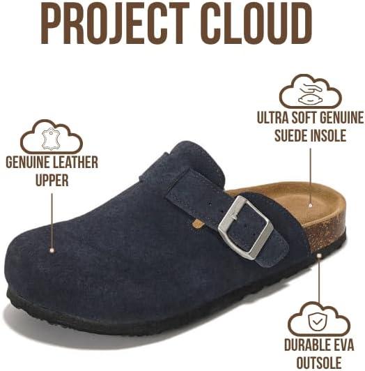 Project Cloud Genuine Leather Footbed Clogs for Women – Memory Foam Arch Support Slippers for Women – Trendy Slip-ons Women’s Mules & Clogs Sandals (Benton)(Navy Suede)