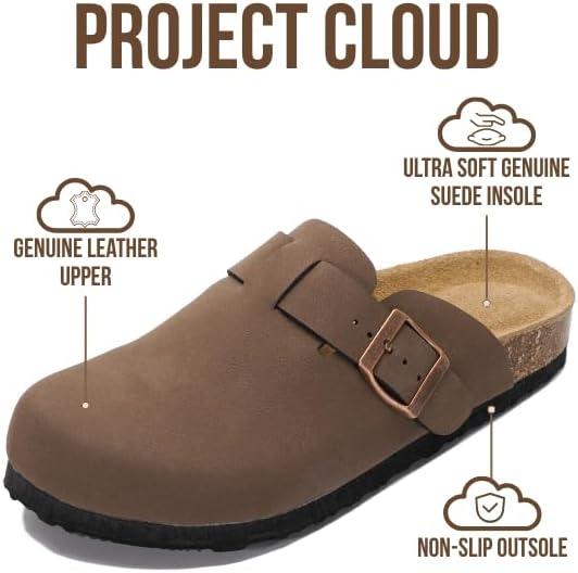 Project Cloud Genuine Leather Footbed Clogs for Women – Memory Foam Arch Support Slippers for Women – Trendy Slip-ons Women’s Mules & Clogs Sandals (Benton)(Tan Leather)