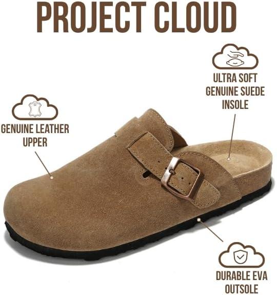 Project Cloud Genuine Leather Footbed Clogs for Women – Memory Foam Arch Support Slippers for Women – Trendy Slip-ons Women’s Mules & Clogs Sandals (Benton)(Tan Suede)