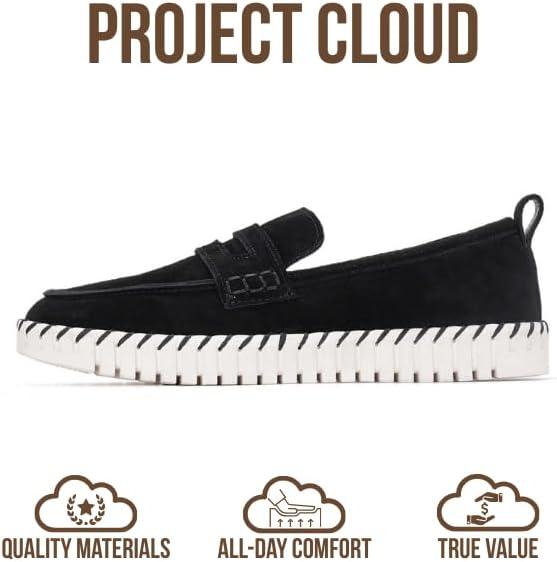 Project Cloud Genuine Leather Loafers for Women – Memory Foam Womens Shoes – Non Slip Spring Loafers Flexible Sole – Fashion Shoes for Women 2025 (Filide)(Black)