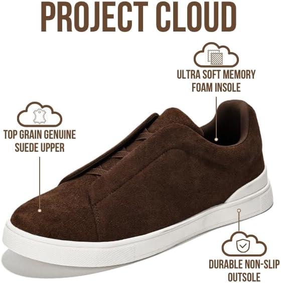 Project Cloud Genuine Leather Memory Foam Insole Mens Shoes – Lightweight & Non Slip Shoes for Men Sneakers – Everyday Slip On Mens Sneakers (Hudson)(Chocolate Brown Genuine Suede)