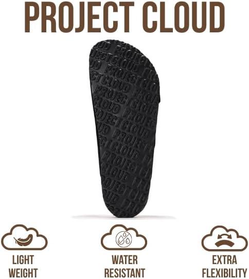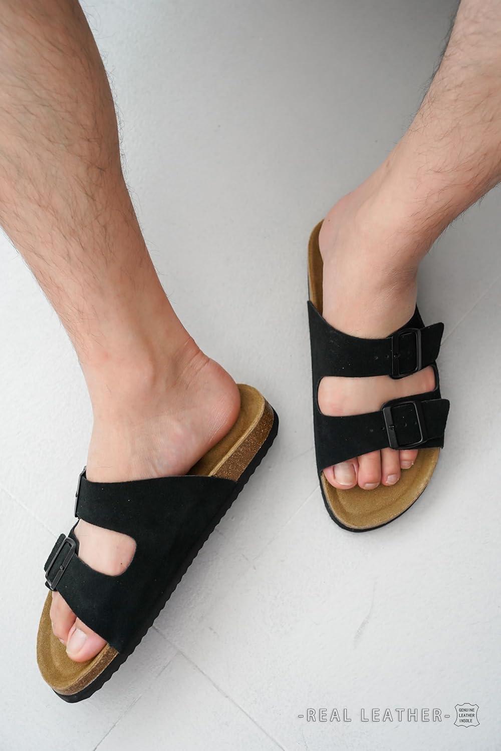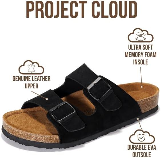 Project Cloud Genuine Leather Mens Sandals with Memory Foam Natural Cork Footbed Slides for Men Footwear – Non-Slip Double-Strap Buckle Summer Sandals (Arizona)(Black Suede)