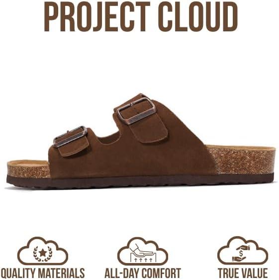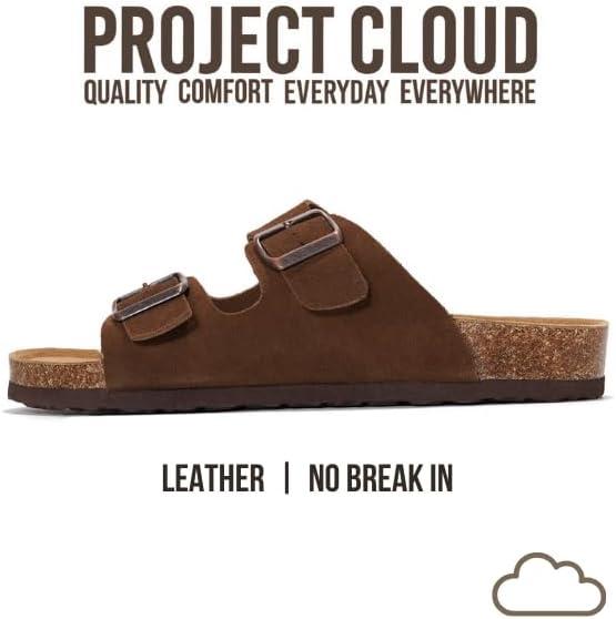Project Cloud Genuine Leather Mens Sandals with Memory Foam Natural Cork Footbed Slides for Men Footwear – Non-Slip Double-Strap Buckle Summer Sandals (Arizona)(Choco Suede)