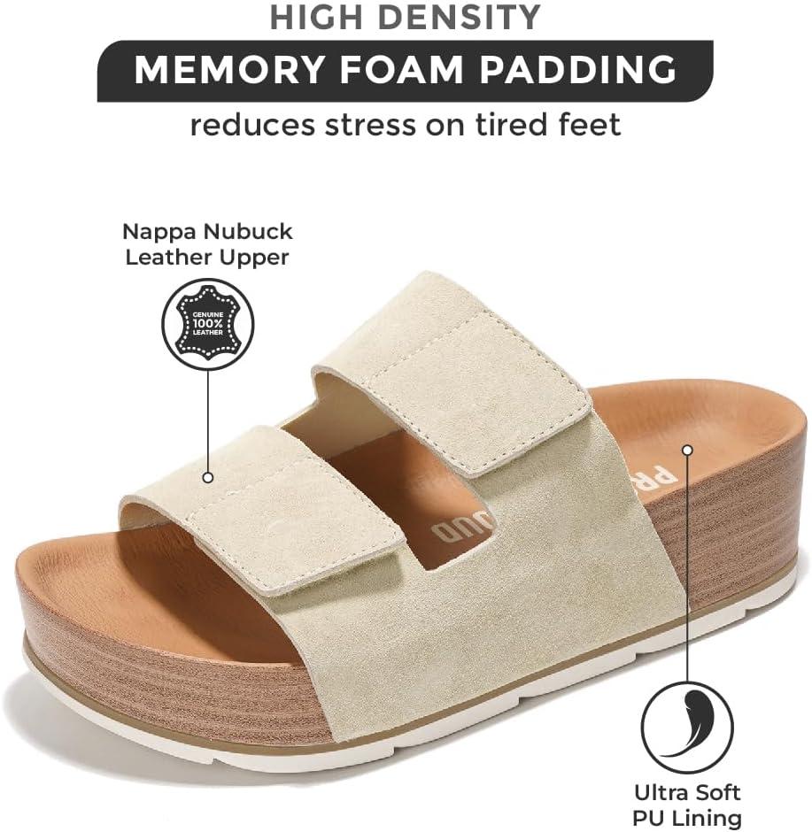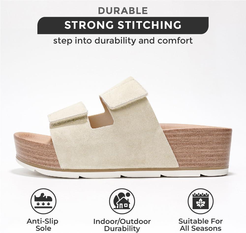 Project Cloud Genuine Leather Platform Sandals Women Footwear – Beach Summer Wedges with Comfortable Memory Foam Insole – Non Slip & Lightweight Wedge Sandals for Women 2025(Birch)