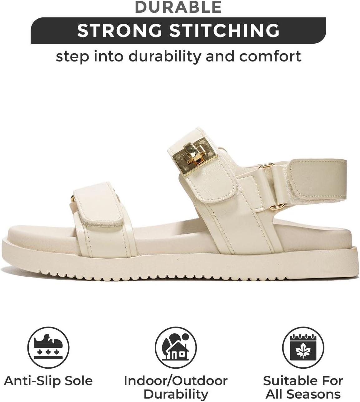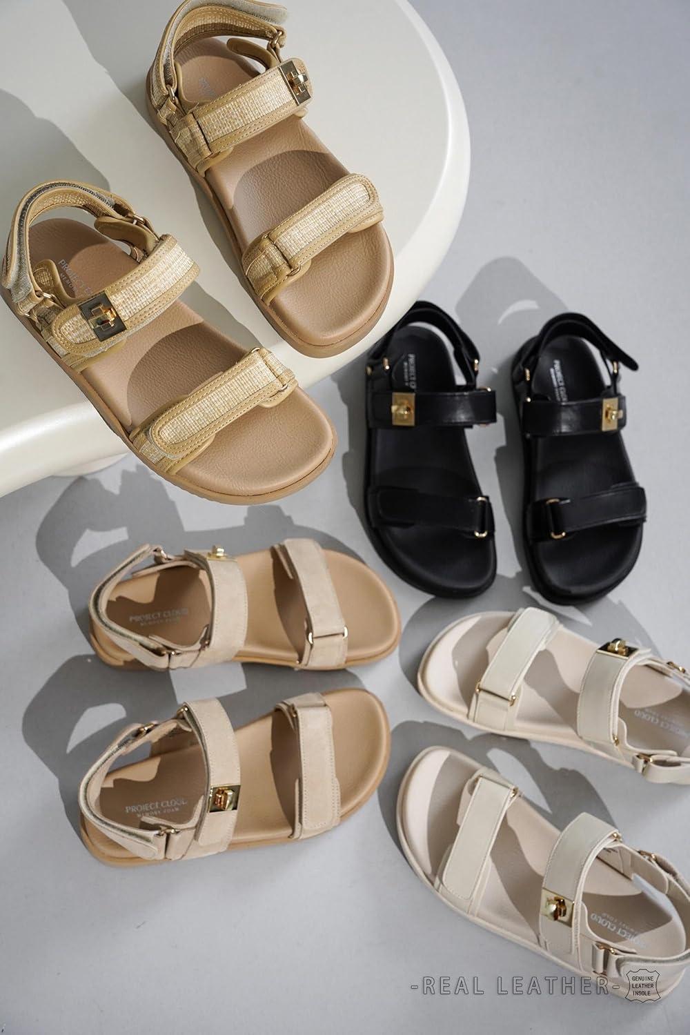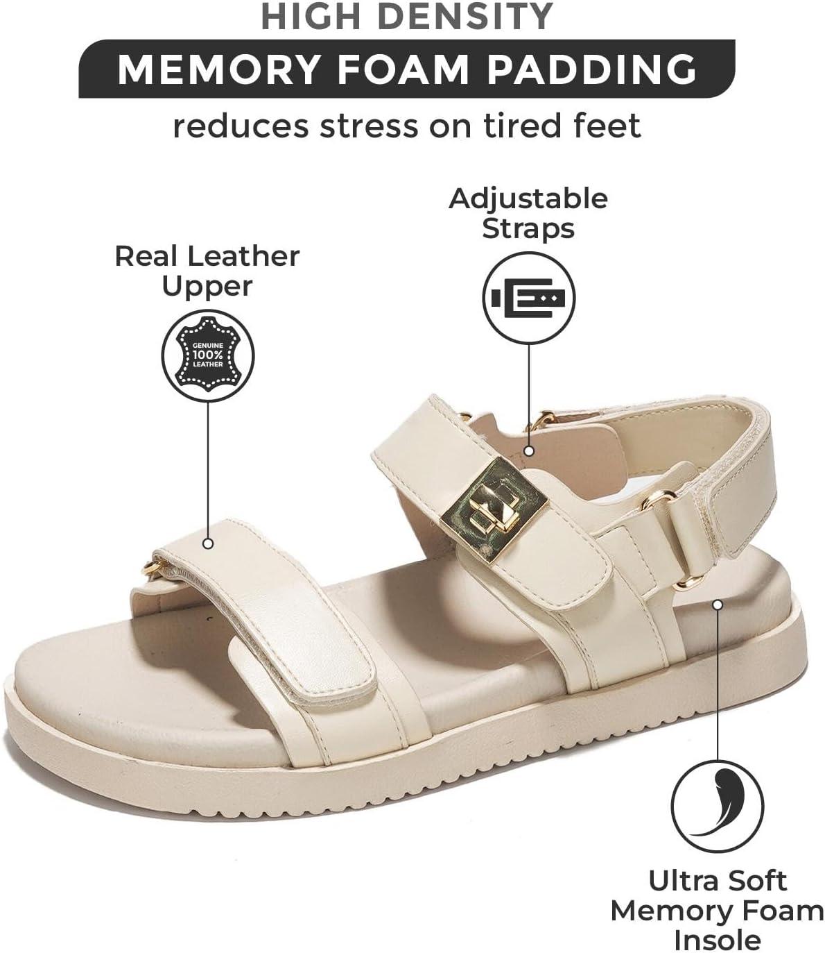 Project Cloud Genuine Leather Platform Sandals Women Footwear – Comfortable and Adjustable Strappy Summer Sandals for Women 2025 – Memory Foam and Non-Slip Slingback Beach Slides(Beige)