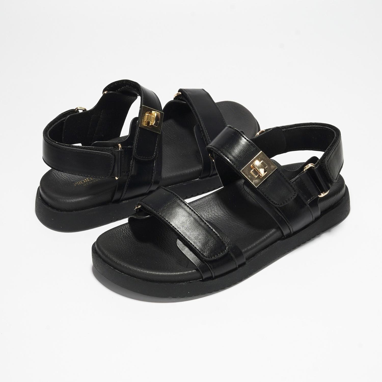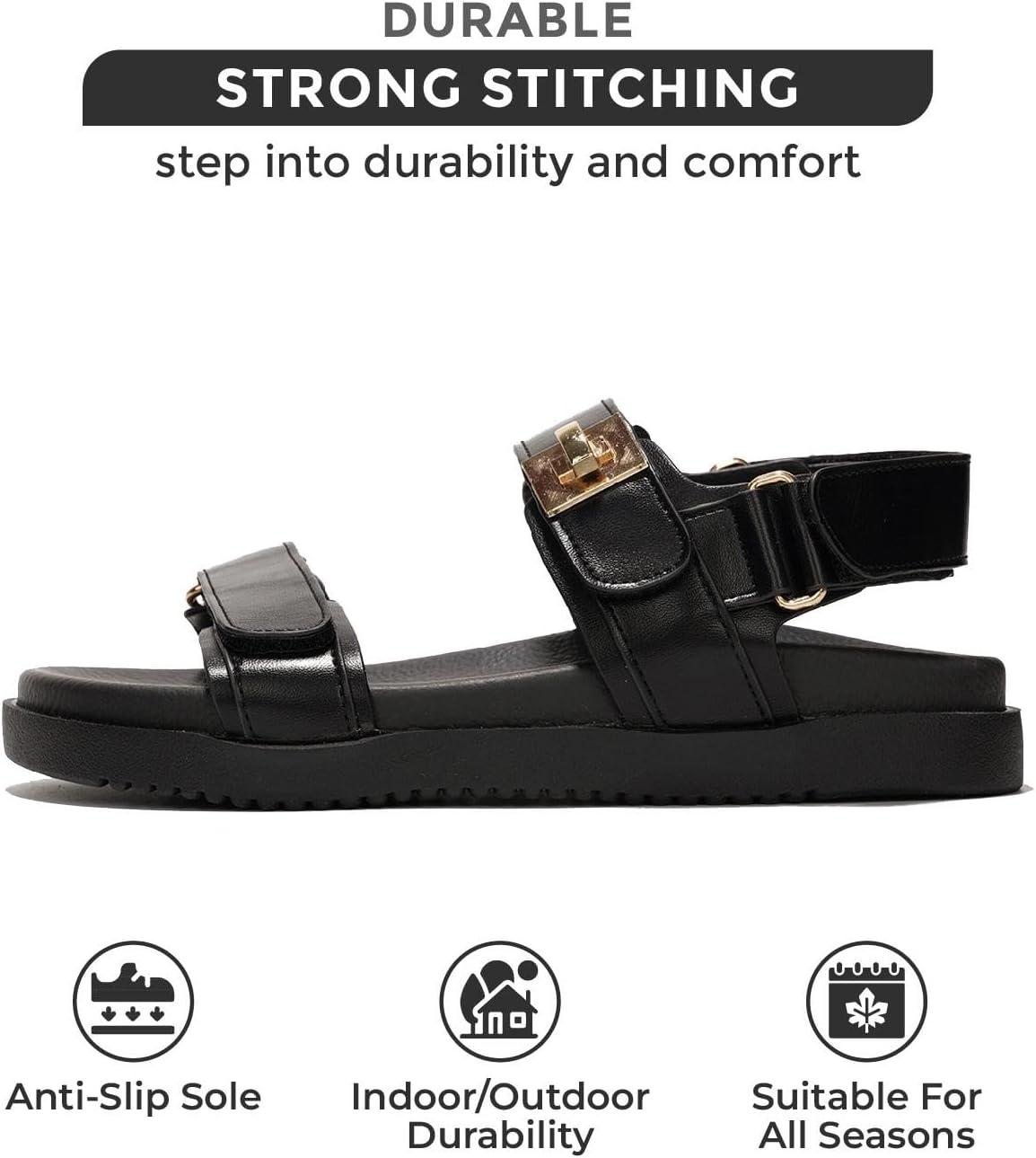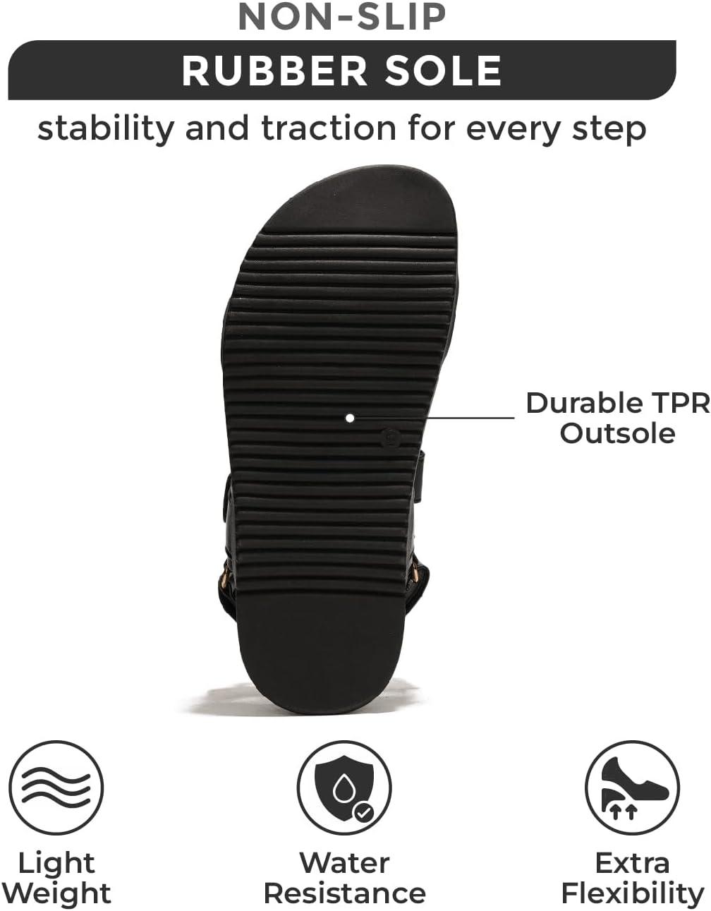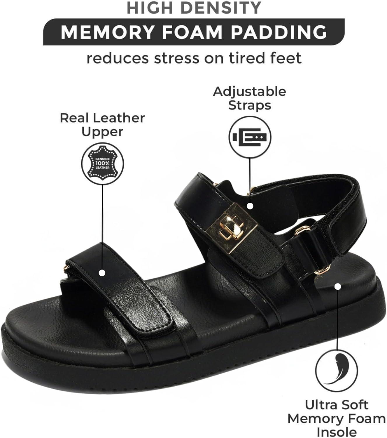 Project Cloud Genuine Leather Platform Sandals Women Footwear – Comfortable and Adjustable Strappy Summer Sandals for Women 2025 – Memory Foam and Non-Slip Slingback Beach Slides(Black)
