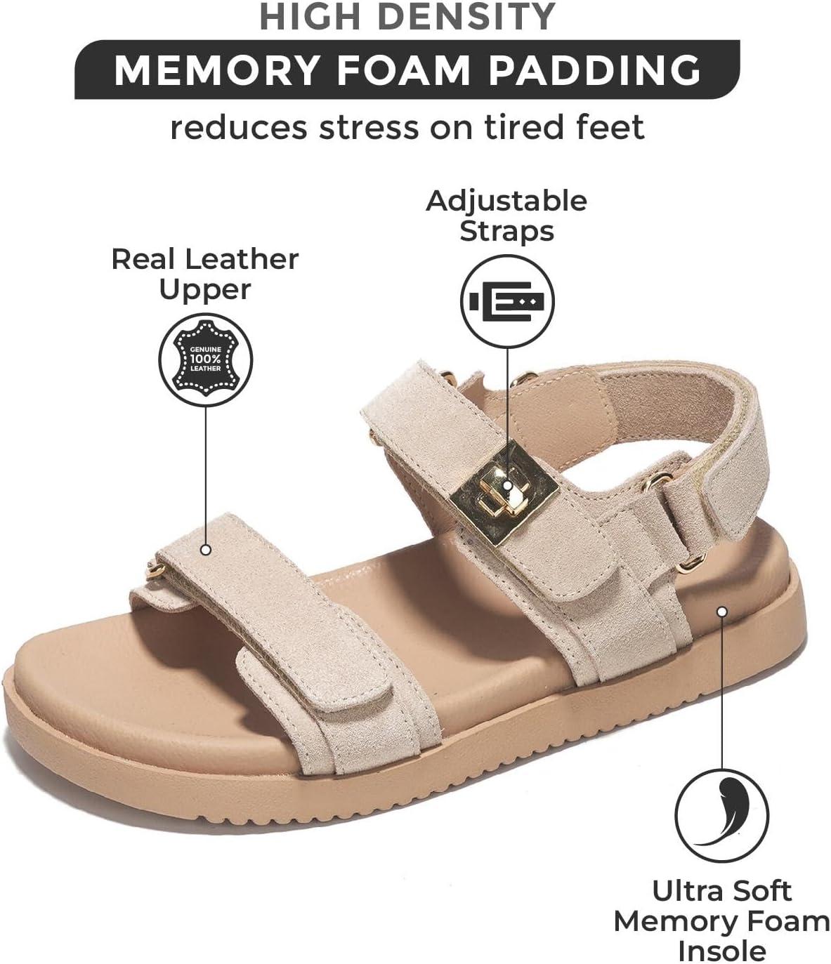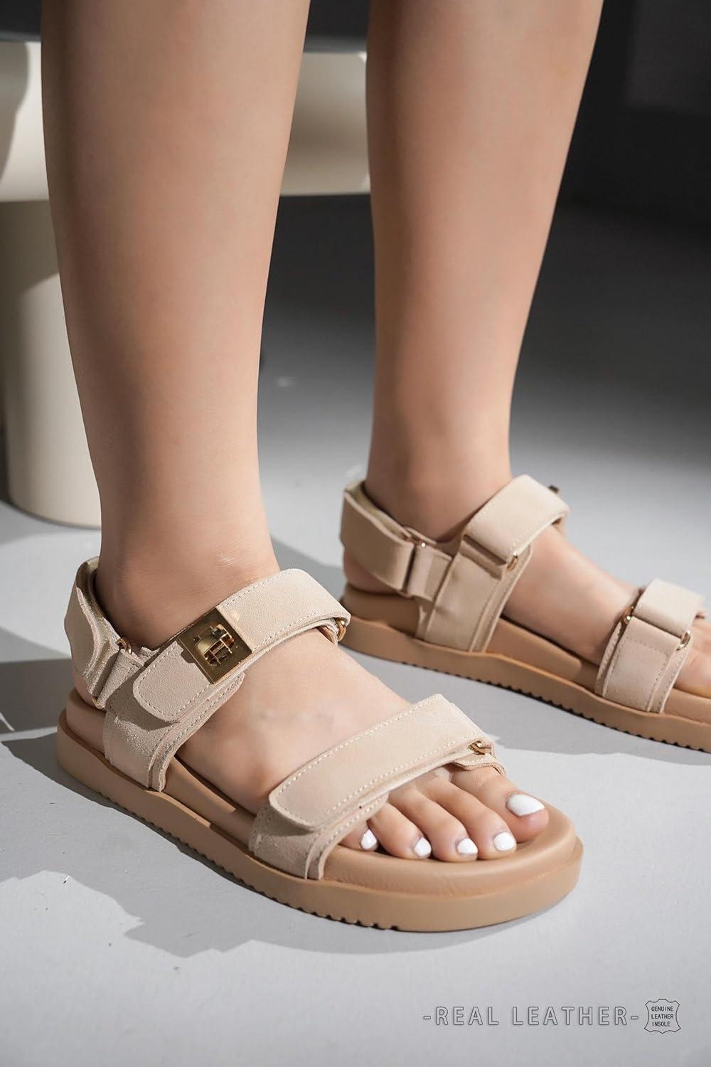 Project Cloud Genuine Leather Platform Sandals Women Footwear – Comfortable and Adjustable Strappy Summer Sandals for Women 2025 – Memory Foam and Non-Slip Slingback Beach Slides(Nude)