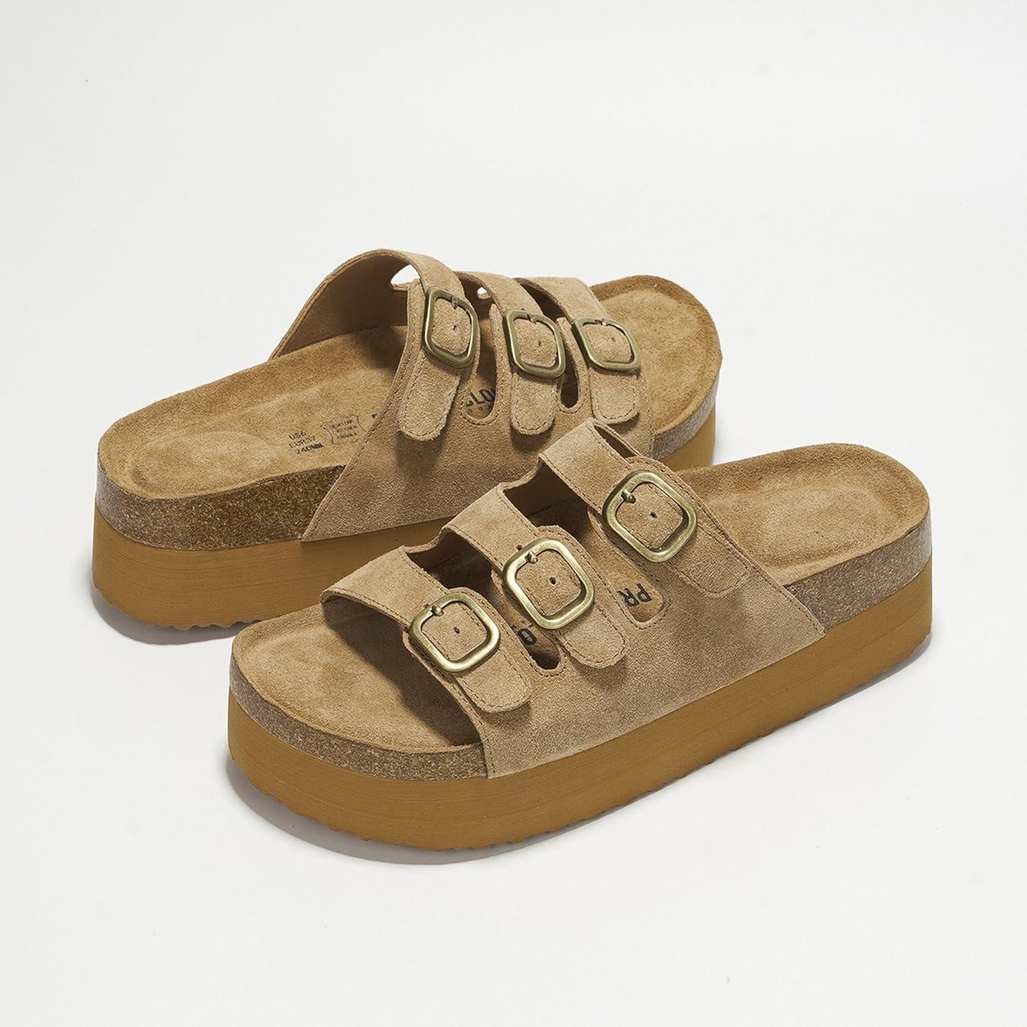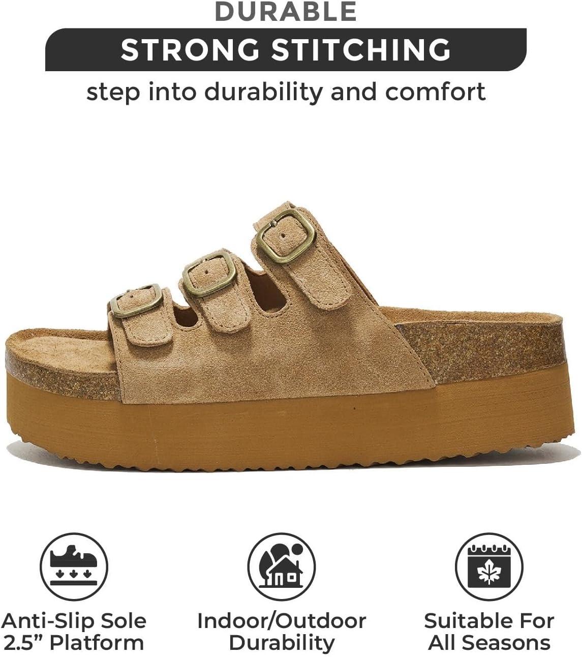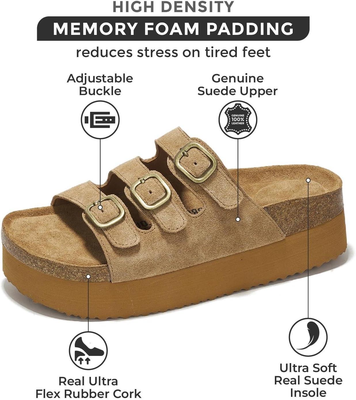 Project Cloud Genuine Leather Platform Sandals Women Footwear – Comfortable Wedges with Memory Foam Insole – Non Slip 3-Strap Summer Sandals for Women 2025 (Dyan)(Chestnut)