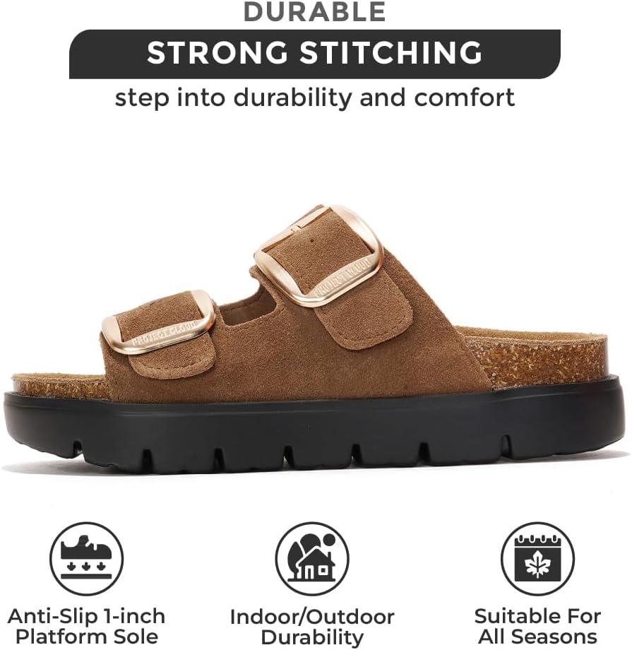 Experience style and comfort with the Project Cloud Sandals, crafted with a genuine suede upper and a supportive cork footbed. Designed for versatility, these womens sandals feature a soft lining and a lightweight 1.5-inch platform for easy, all-day wear. Perfect as slides for women, these sandals combine fashion and functionality, making them a must-have in women footwear collections. Whether you’re heading to the beach or running errands, these women's sandals are an essential companion. Their durable design and sleek silhouette make them ideal as beach sandals for woman, ensuring your feet stay comfortable while looking stylish. Available in various colors, including white sandals woman, they complement any outfit effortlessly. Upgrade your beach essentials with these chic womens slides that offer unmatched comfort and timeless elegance. The Project Cloud Sandals are the ultimate choice for sandals women can rely on for any occasion.