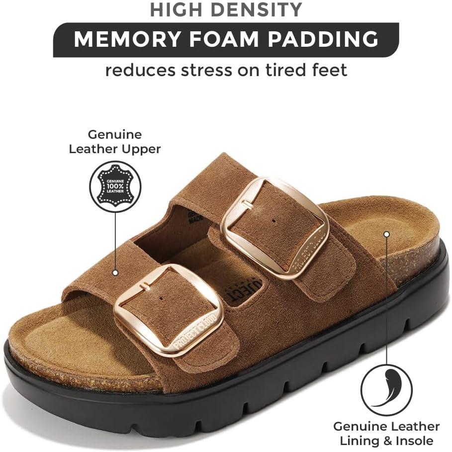 Project Cloud Genuine Leather Platform Sandals Women Footwear – Wedge Chunky Sandals Womens sandals with Memory Foam Insole and Cork Footbed (GREECECHUNKY)(Choco Suede)