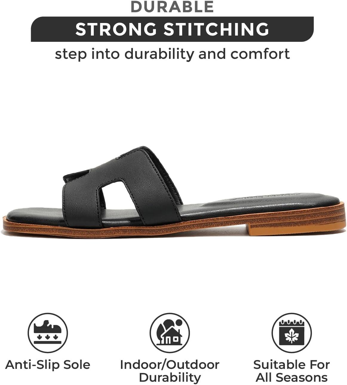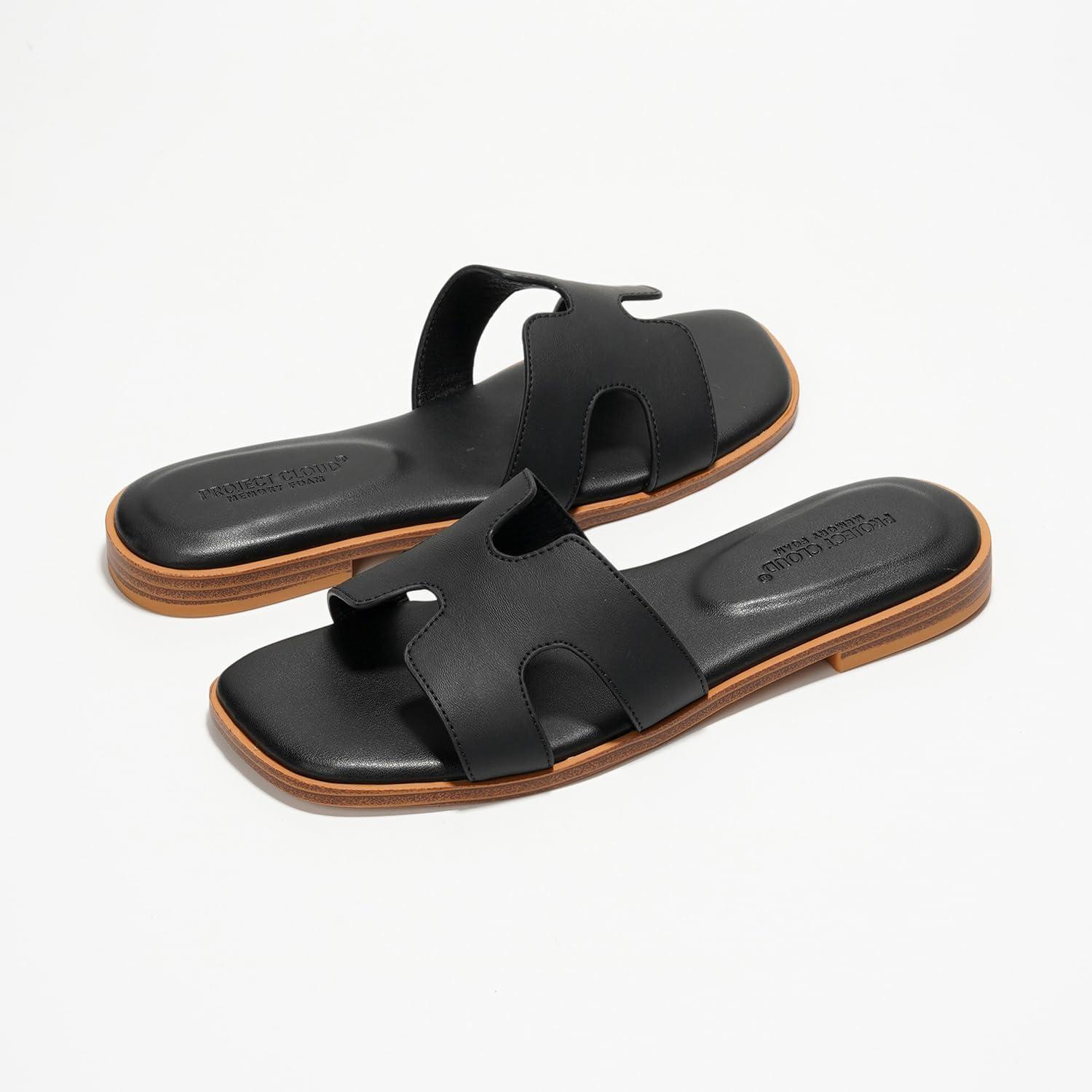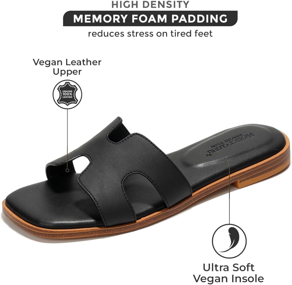 Project Cloud Genuine Leather Sandals for Women – Fashion Flat Womens Sandals with Memory Foam Insole Slides Sandals Women Footwear – Mules Women’s Sandals (Jannel)(Black)