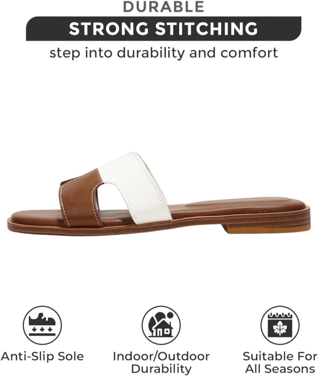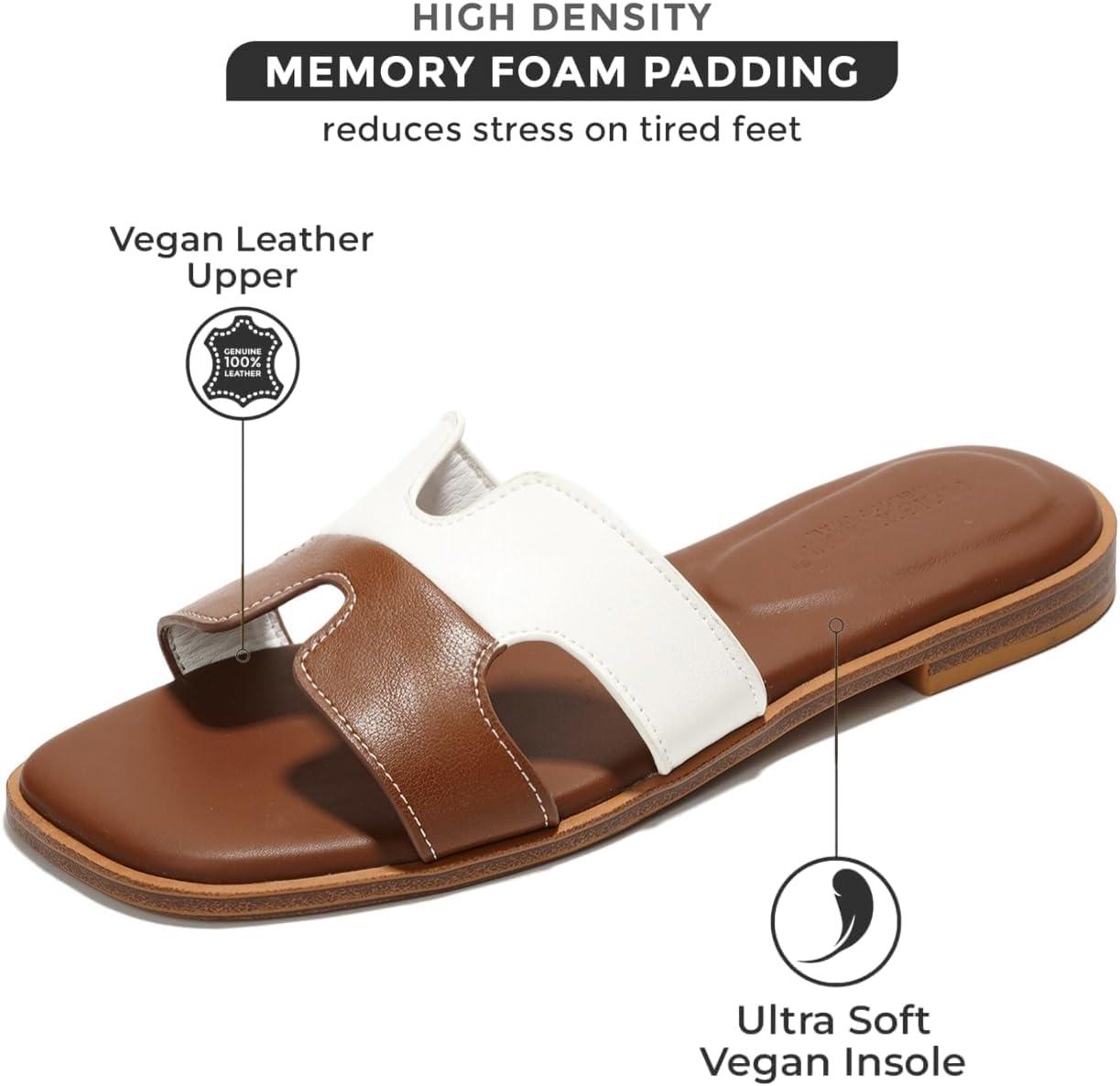 Project Cloud Genuine Leather Sandals for Women – Fashion Flat Womens Sandals with Memory Foam Insole Slides Sandals Women Footwear – Mules Women’s Sandals (Jannel)(Brown White)