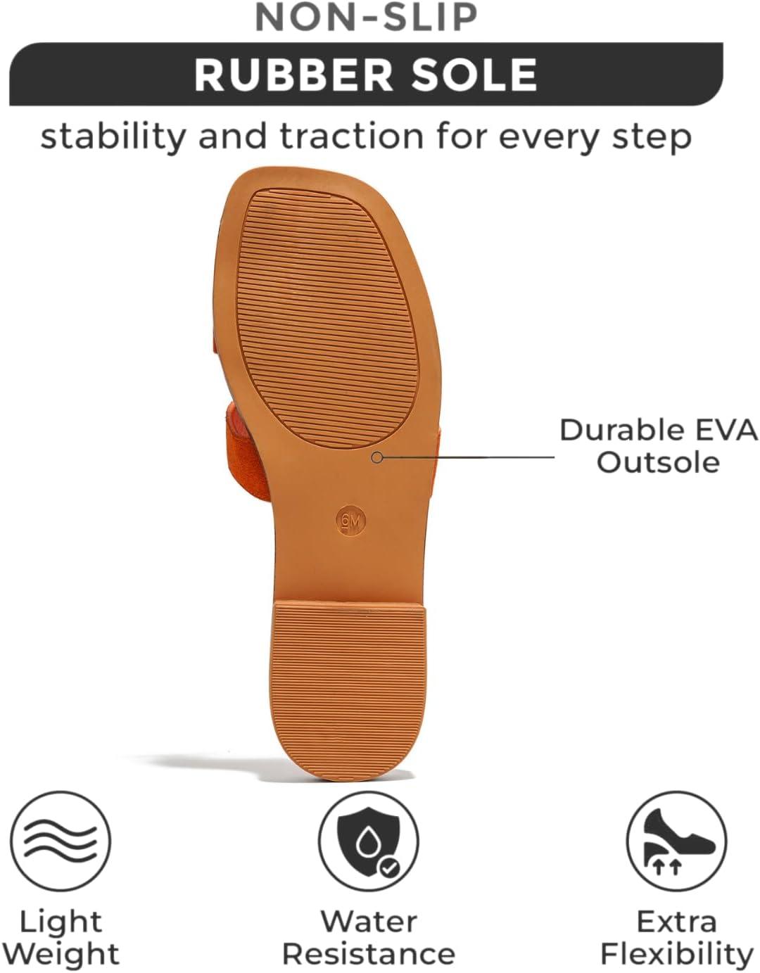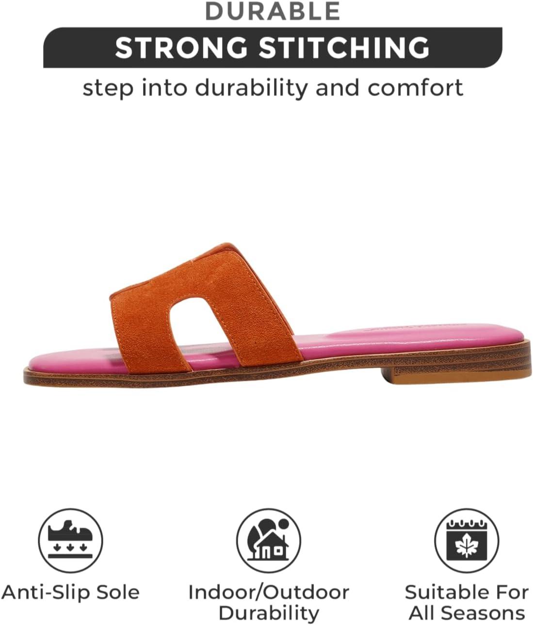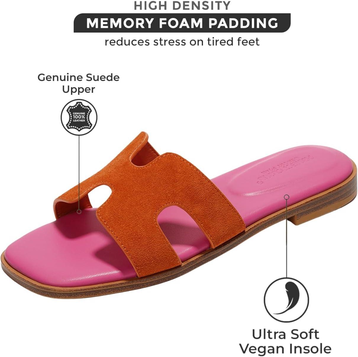 Project Cloud Genuine Leather Sandals for Women – Fashion Flat Womens Sandals with Memory Foam Insole Slides Sandals Women Footwear – Mules Women’s Sandals (Jannel)(Orange)