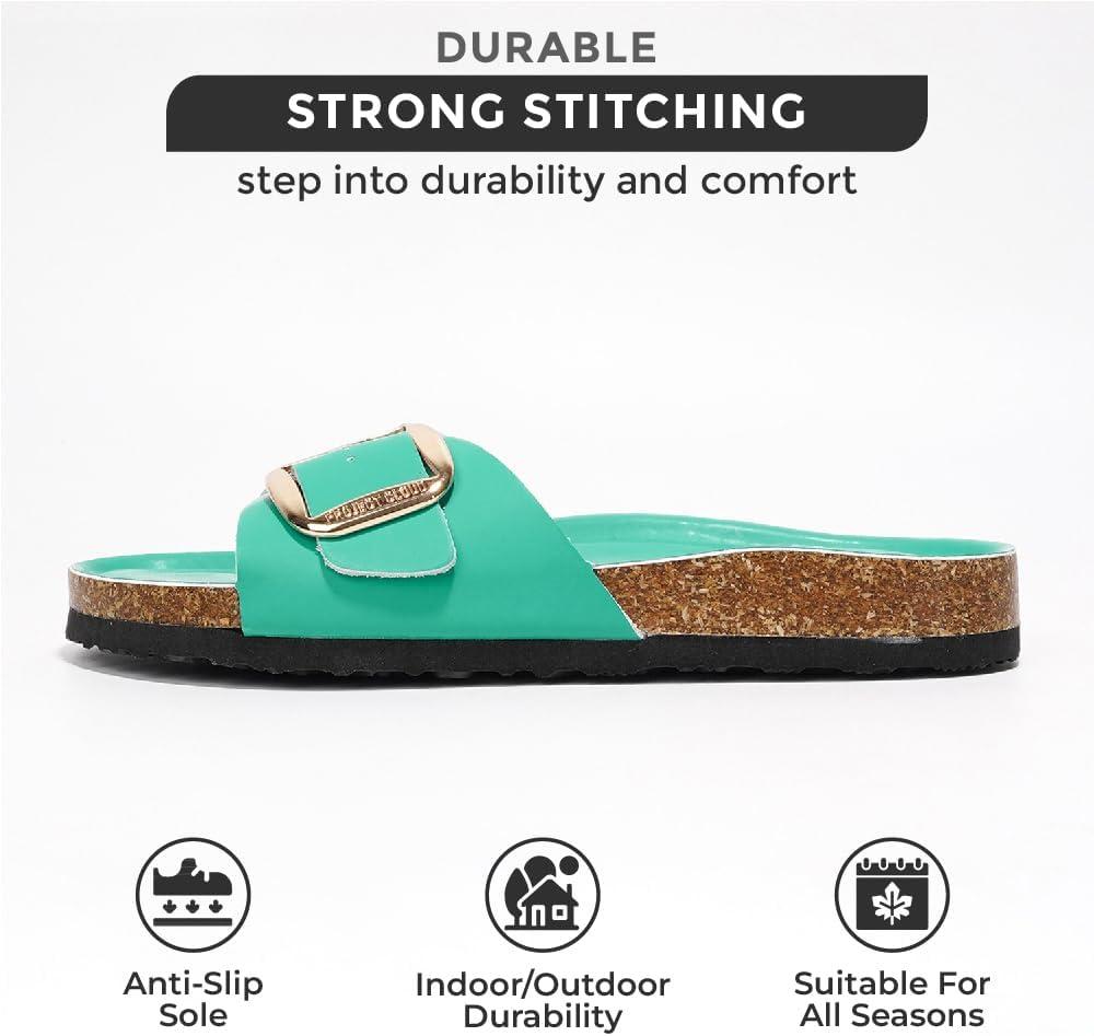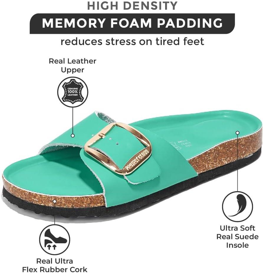 Project Cloud Genuine Leather Sandals Women Dressy Summer Beach Essentials – Flip Flops & Slides with Memory Foam Insole Womens Sandals Comfortable Footwear(Aqua)