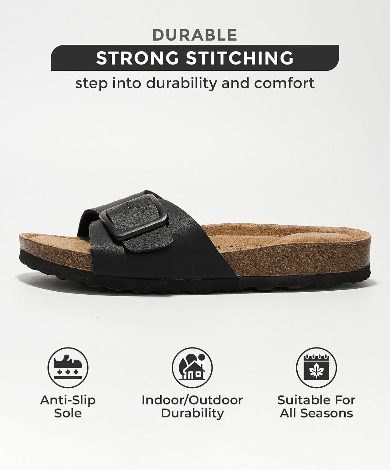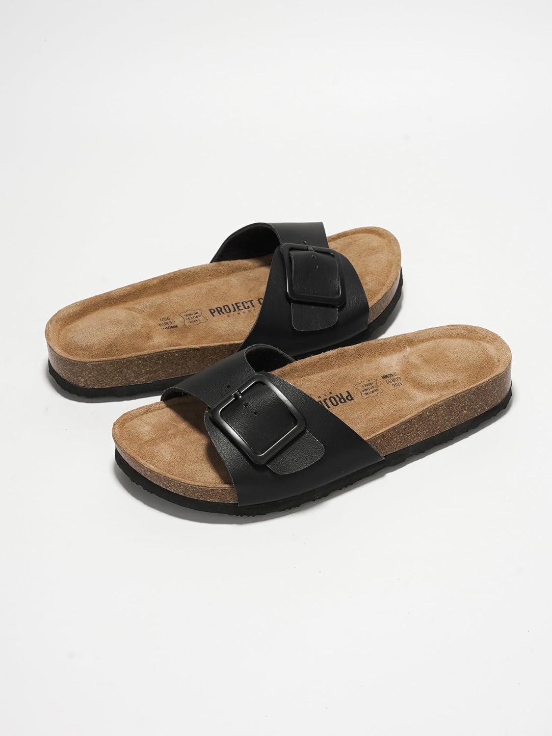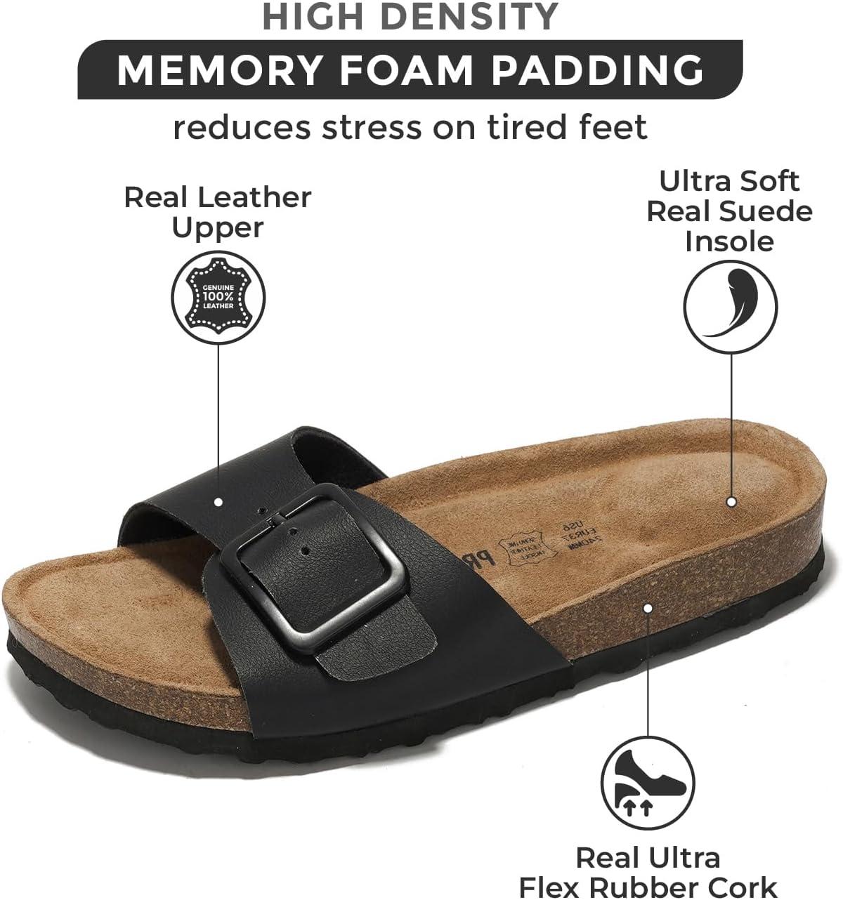 Project Cloud Genuine Leather Sandals Women Dressy Summer Beach Essentials – Flip Flops & Slides with Memory Foam Insole Womens Sandals Comfortable Footwear(Black)