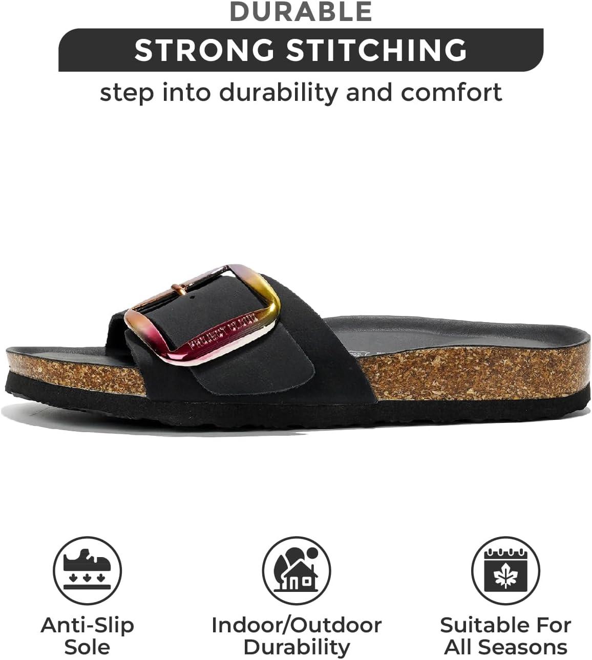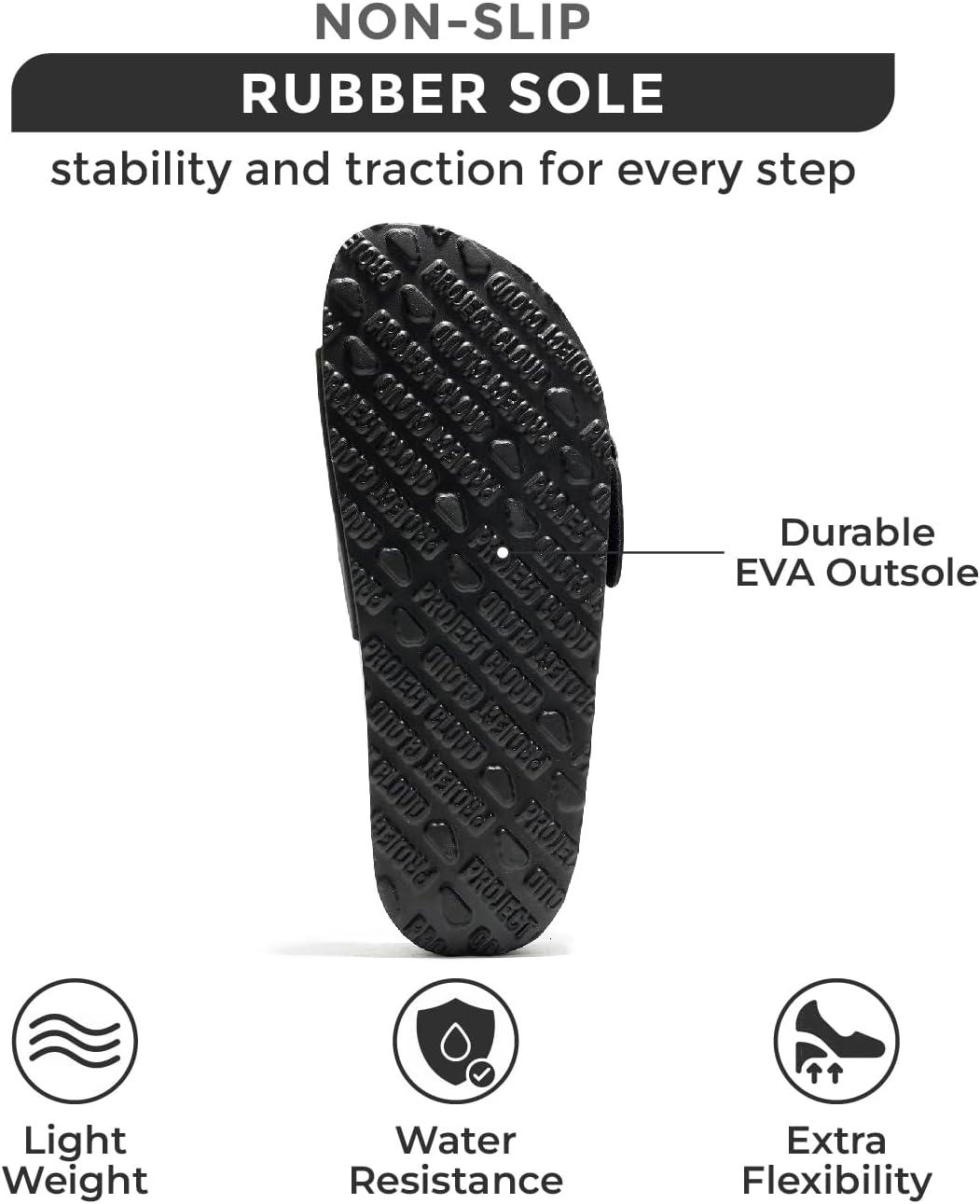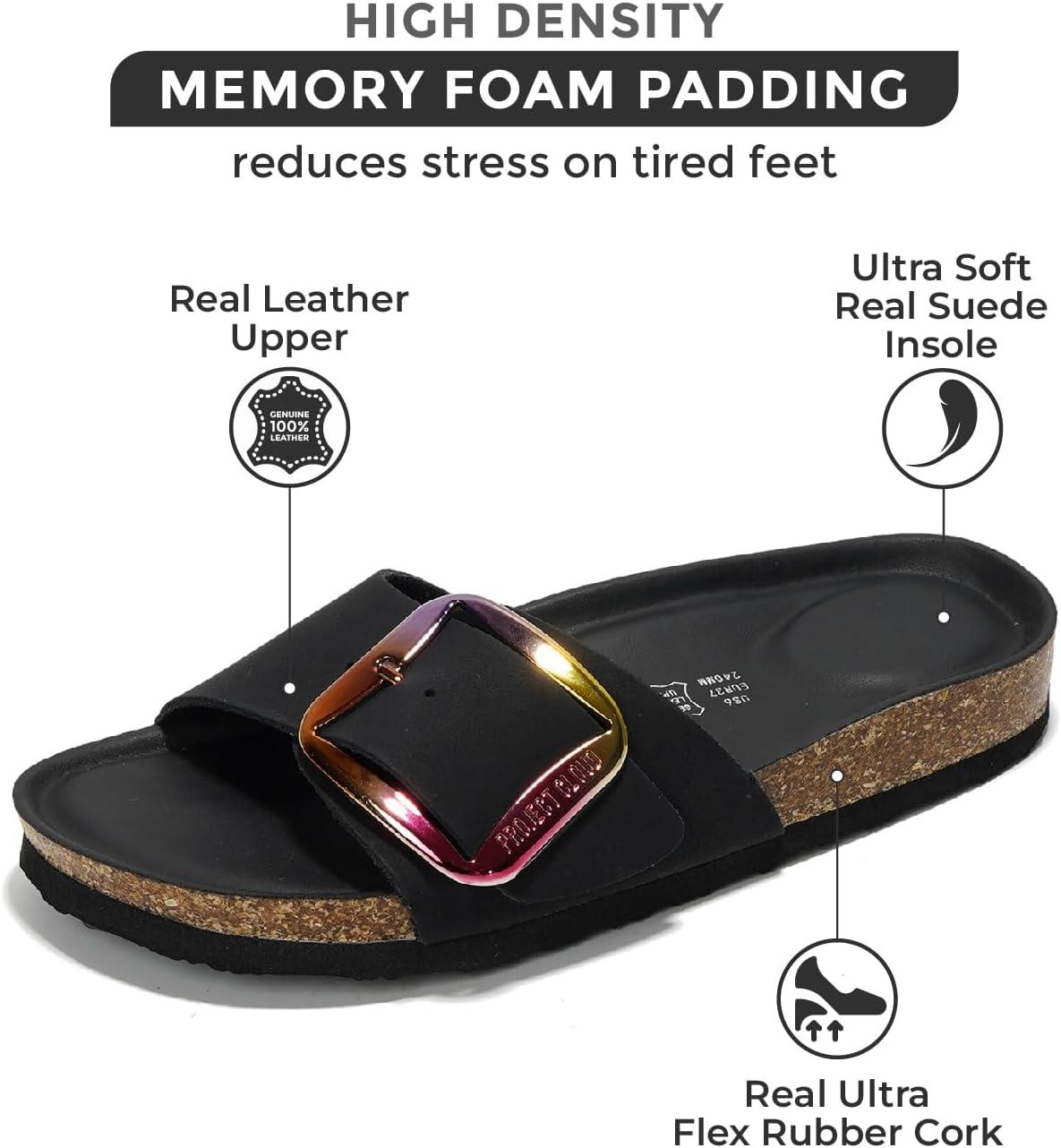 Project Cloud Genuine Leather Sandals Women Dressy Summer Beach Essentials – Flip Flops & Slides with Memory Foam Insole Womens Sandals Comfortable Footwear(Blackmatte-bigger Buckle)