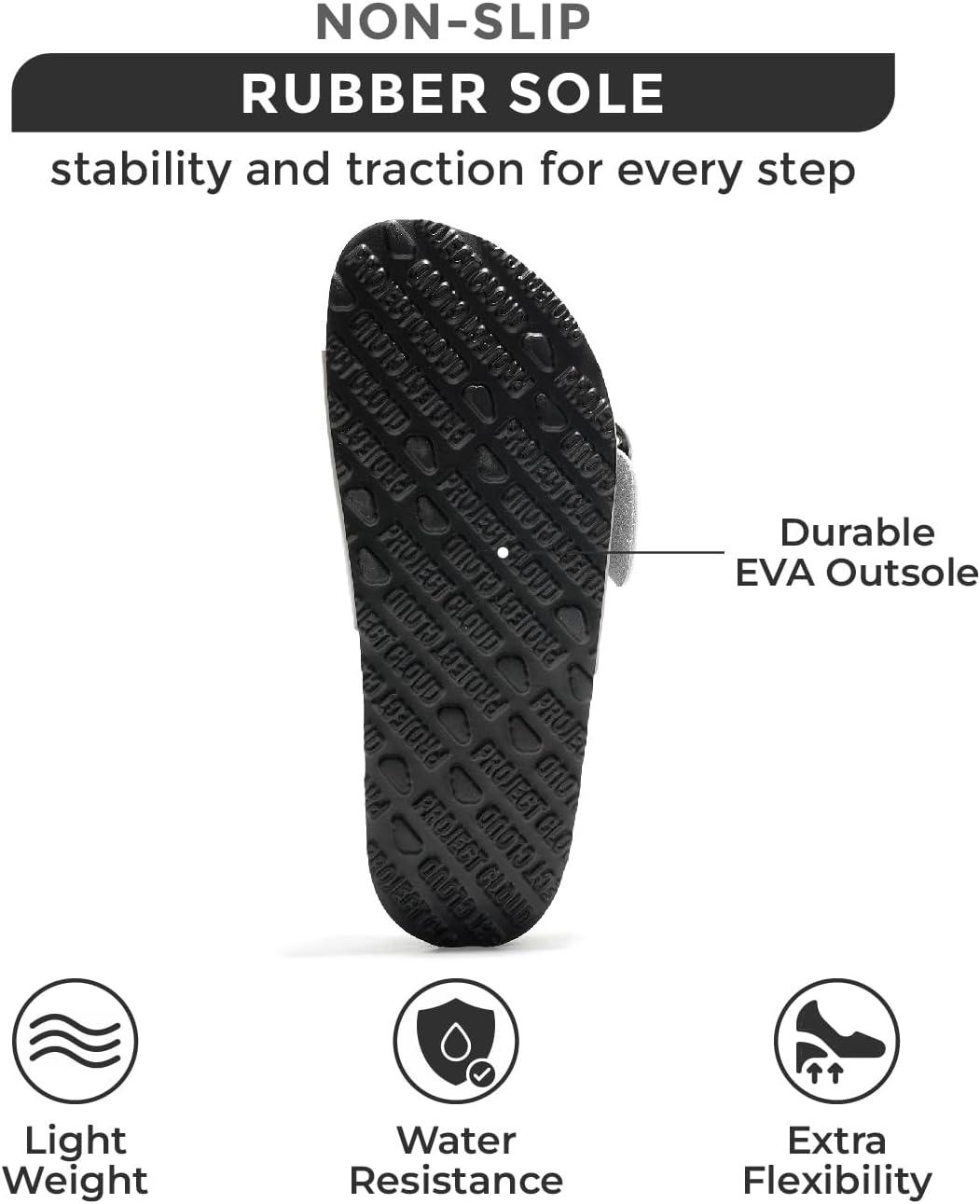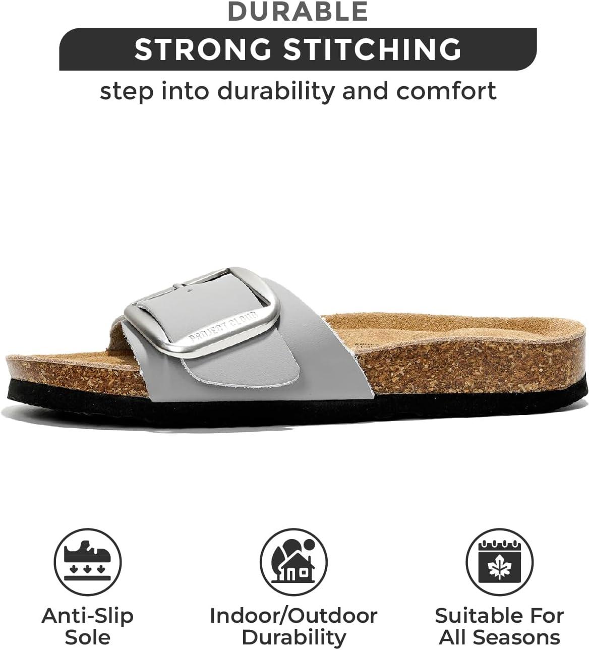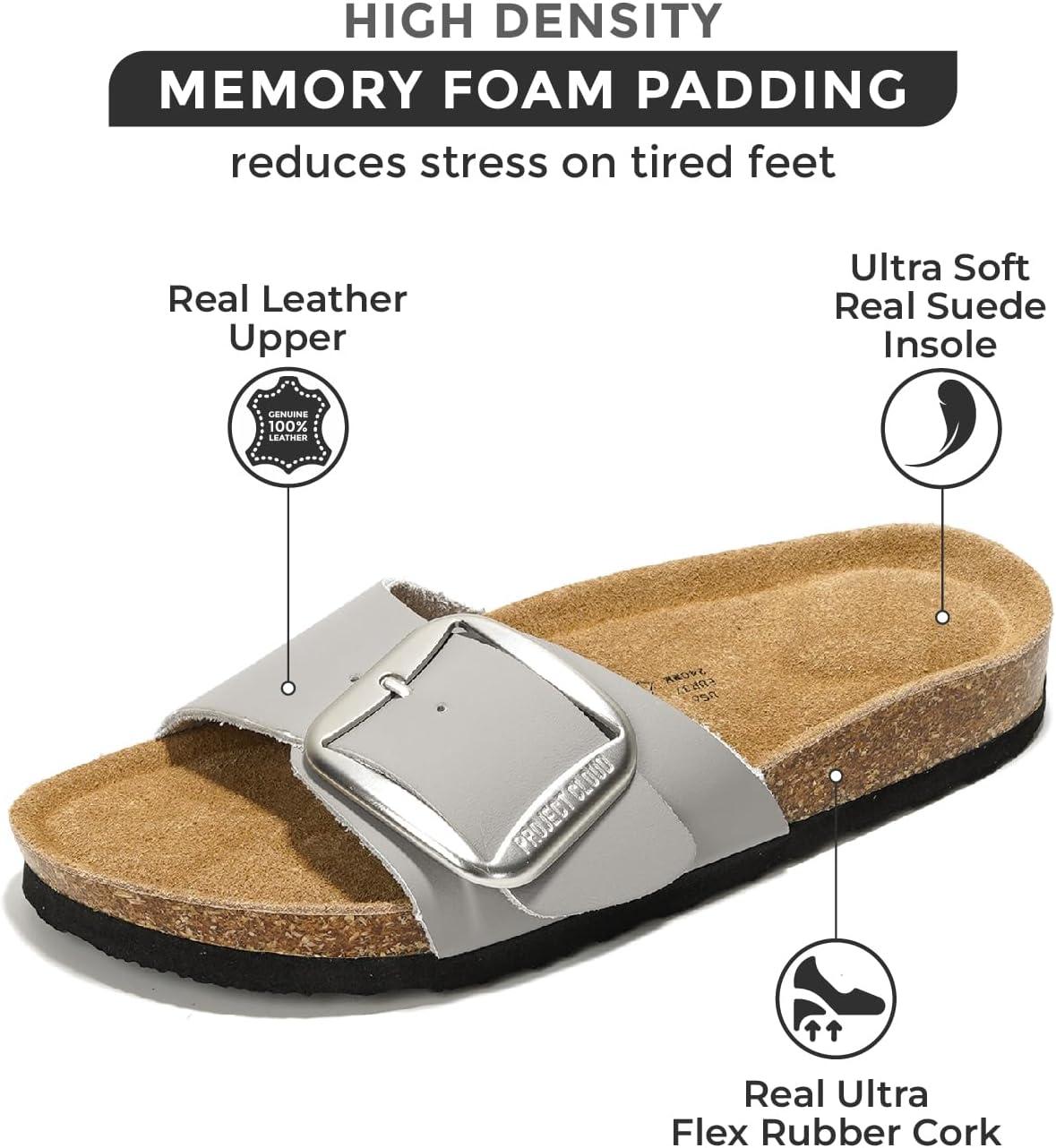 Project Cloud Genuine Leather Sandals Women Dressy Summer Beach Essentials – Flip Flops & Slides with Memory Foam Insole Womens Sandals Comfortable Footwear(Grey-bigger Buckle)