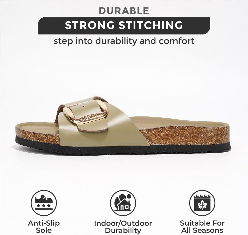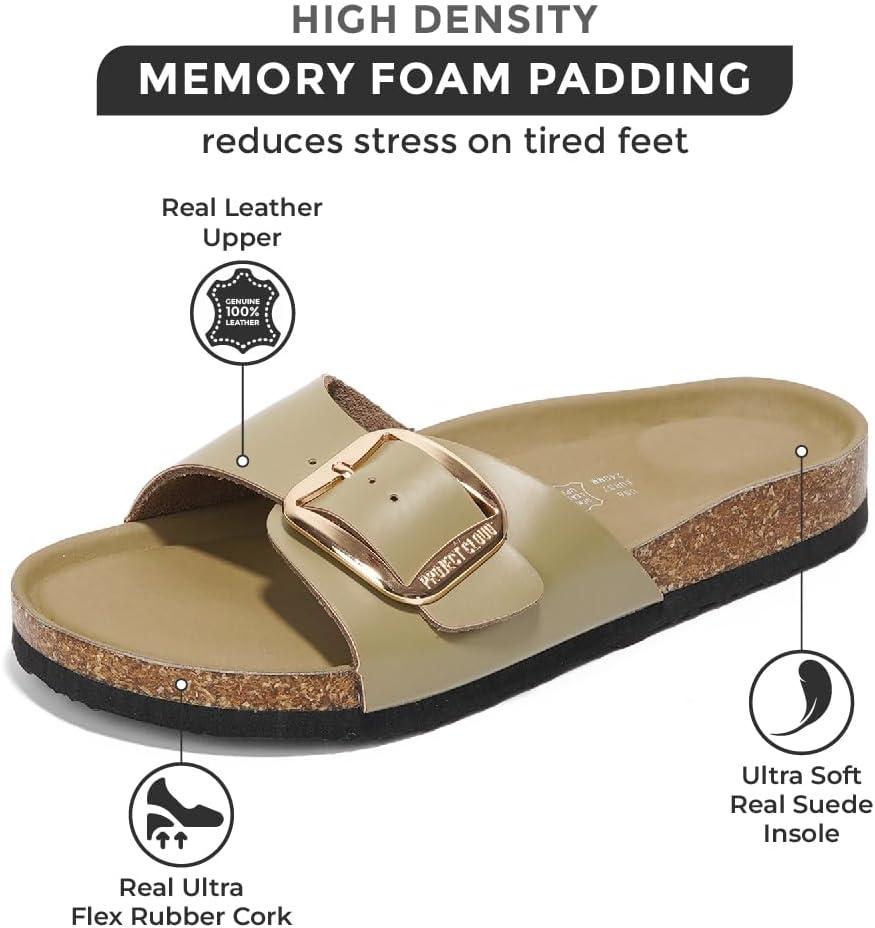 Project Cloud Genuine Leather Sandals Women Dressy Summer Beach Essentials – Flip Flops & Slides with Memory Foam Insole Womens Sandals Comfortable Footwear(Moss)