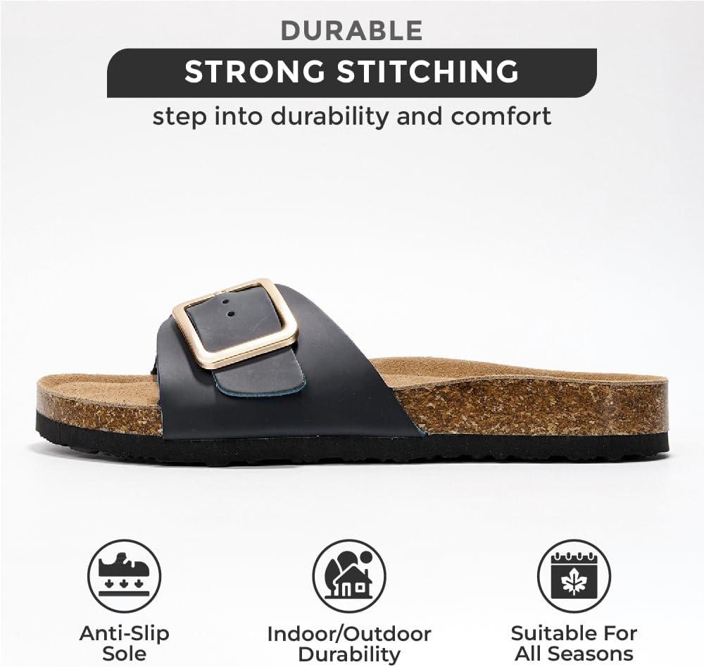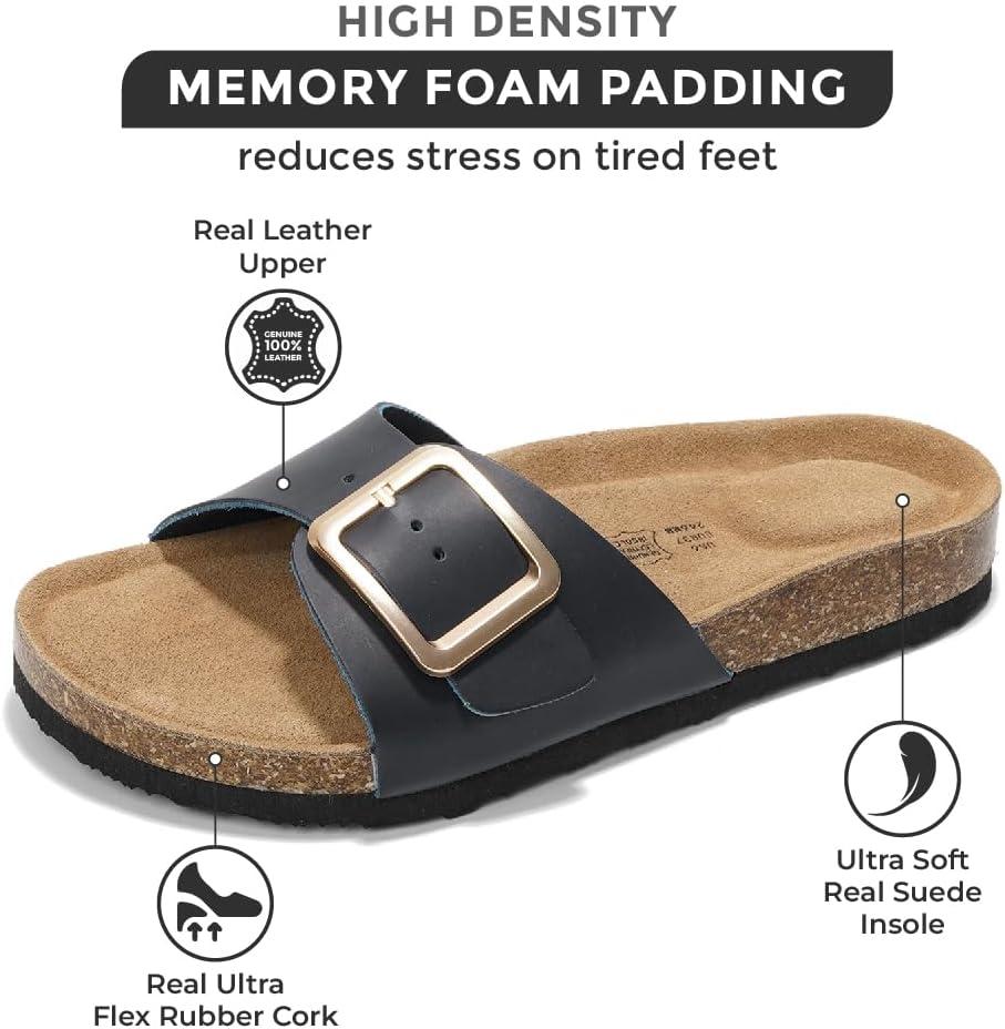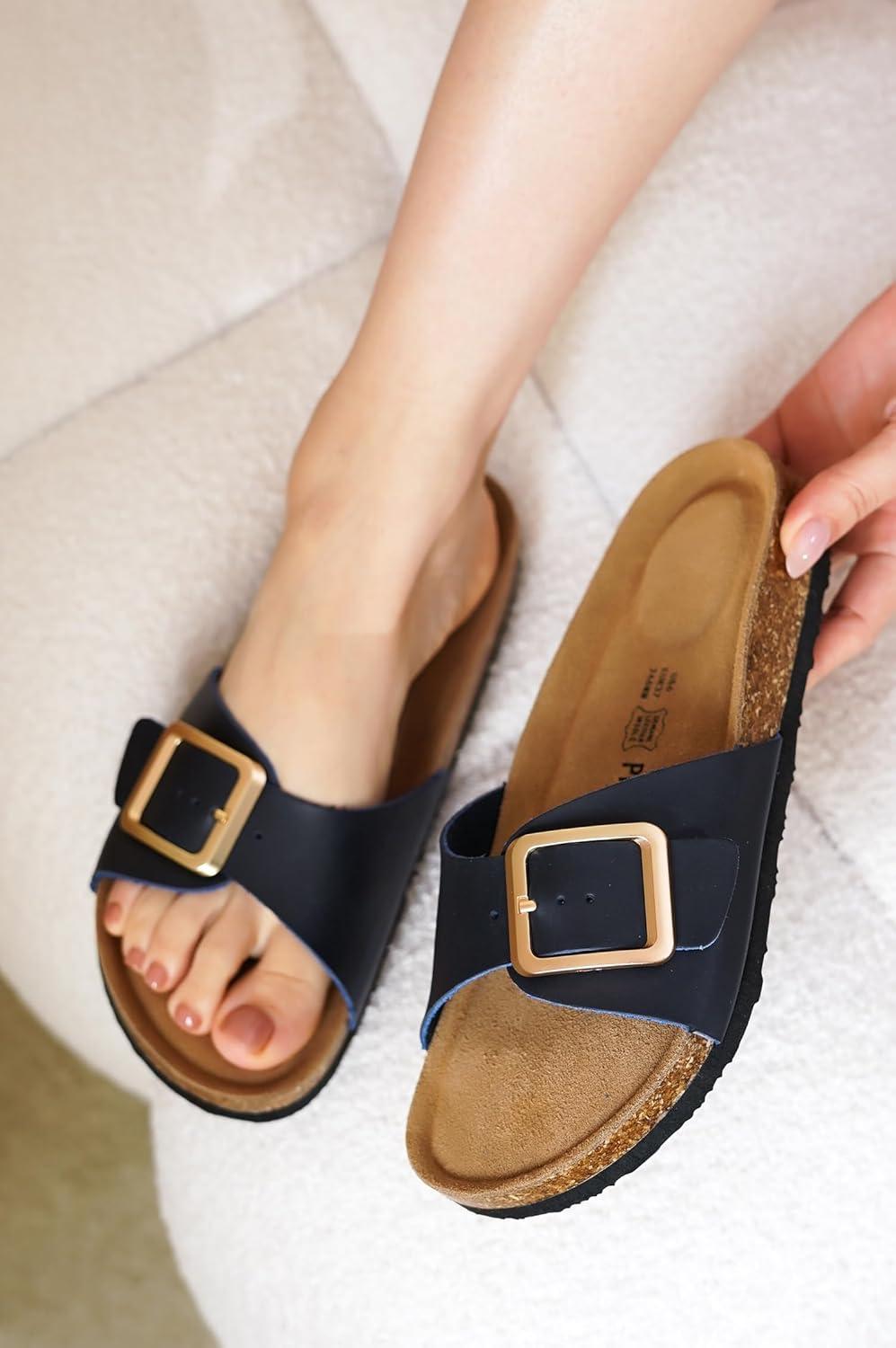 Project Cloud Genuine Leather Sandals Women Dressy Summer Beach Essentials – Flip Flops & Slides with Memory Foam Insole Womens Sandals Comfortable Footwear(Navy)