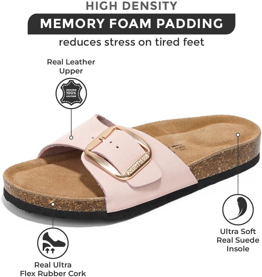 Project Cloud Genuine Leather Sandals Women Dressy Summer Beach Essentials – Flip Flops & Slides with Memory Foam Insole Womens Sandals Comfortable Footwear(Pink)
