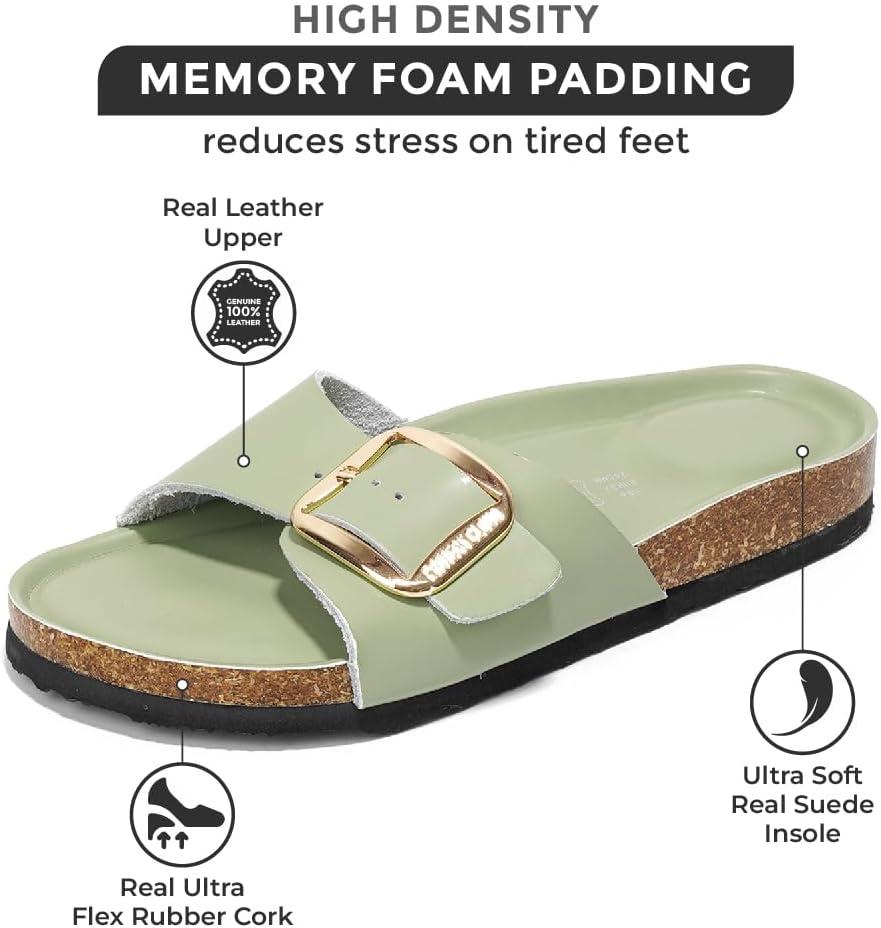 Project Cloud Genuine Leather Sandals Women Dressy Summer Beach Essentials – Flip Flops & Slides with Memory Foam Insole Womens Sandals Comfortable Footwear(Pistachio)