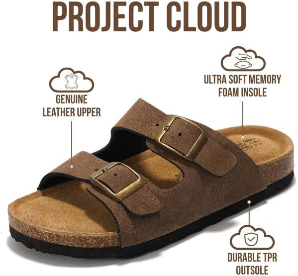 Project Cloud Genuine Leather Slides For Kids – Natural Cork Footbed Slides for Kids Sandals for Girls & Boys – Non-Slip Boys & Girls Sandals(Brown Sugar)