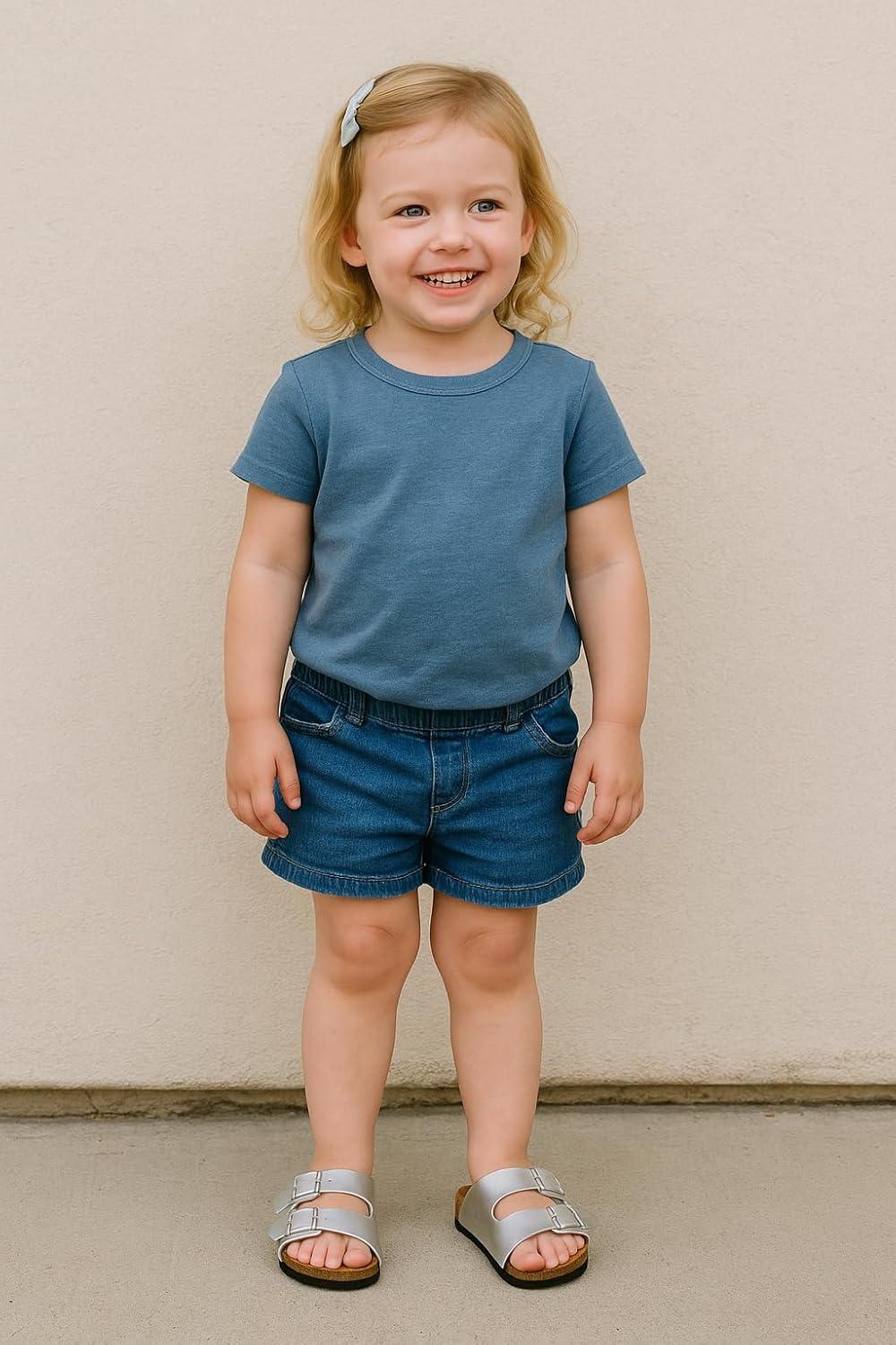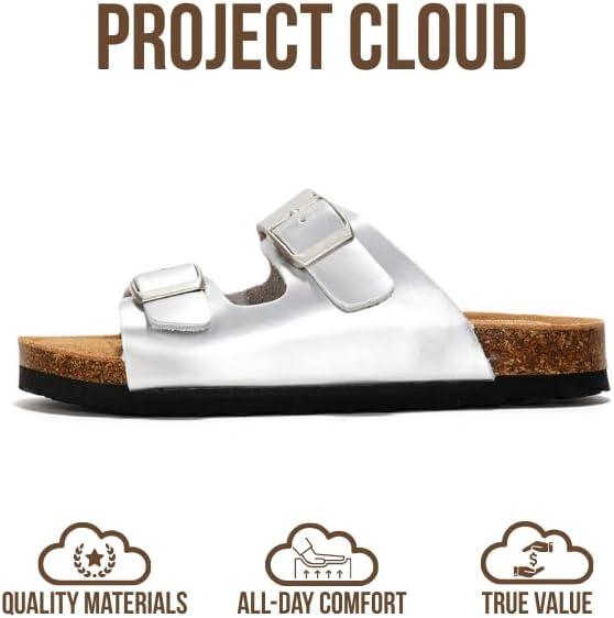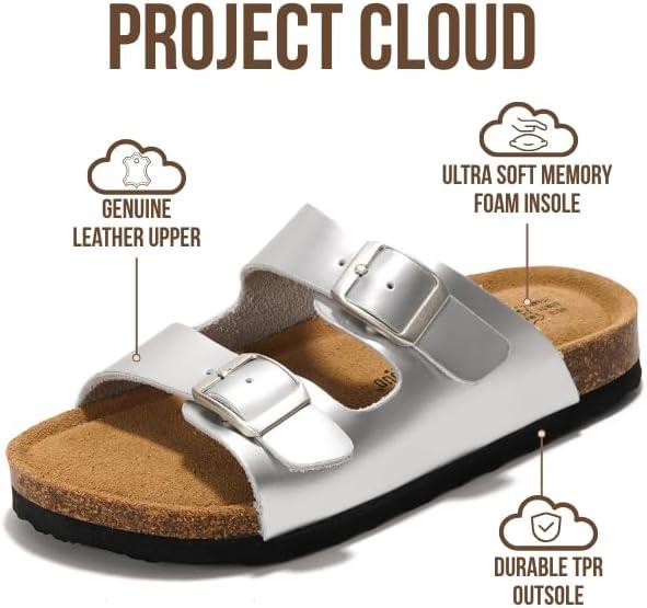 Project Cloud Genuine Leather Slides For Kids – Natural Cork Footbed Slides for Kids Sandals for Girls & Boys – Non-Slip Boys & Girls Sandals(Silver)