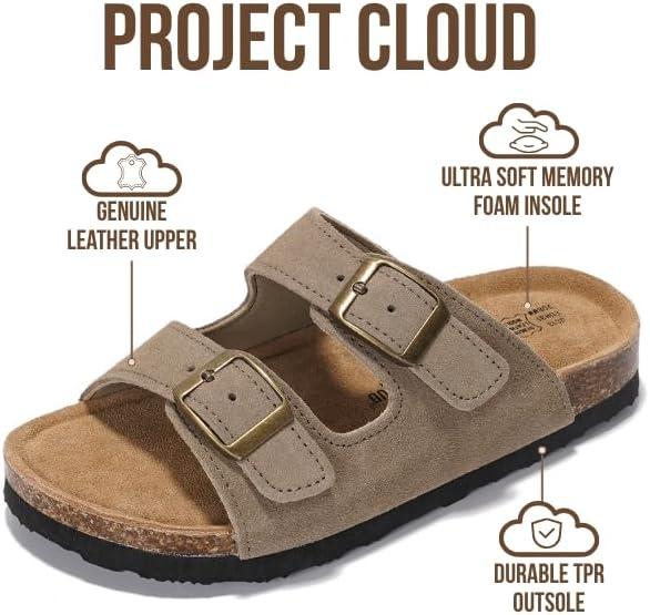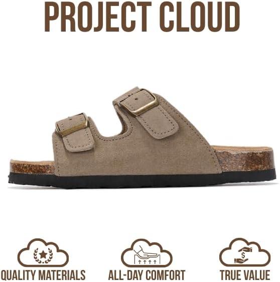 Project Cloud Genuine Leather Slides For Kids – Natural Cork Footbed Slides for Kids Sandals for Girls & Boys – Non-Slip Boys & Girls Sandals(Taupe Suede)