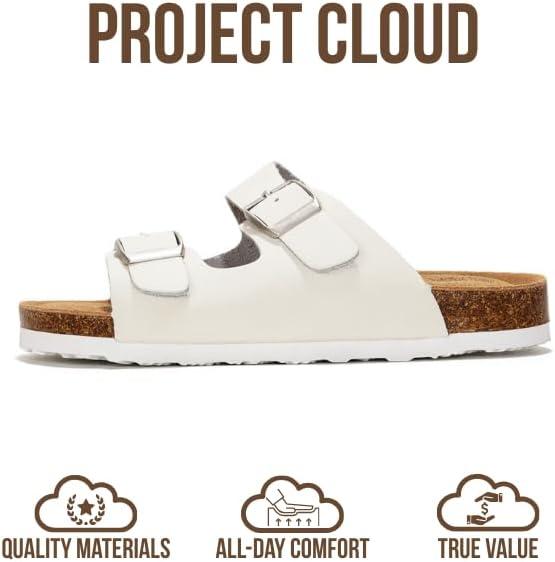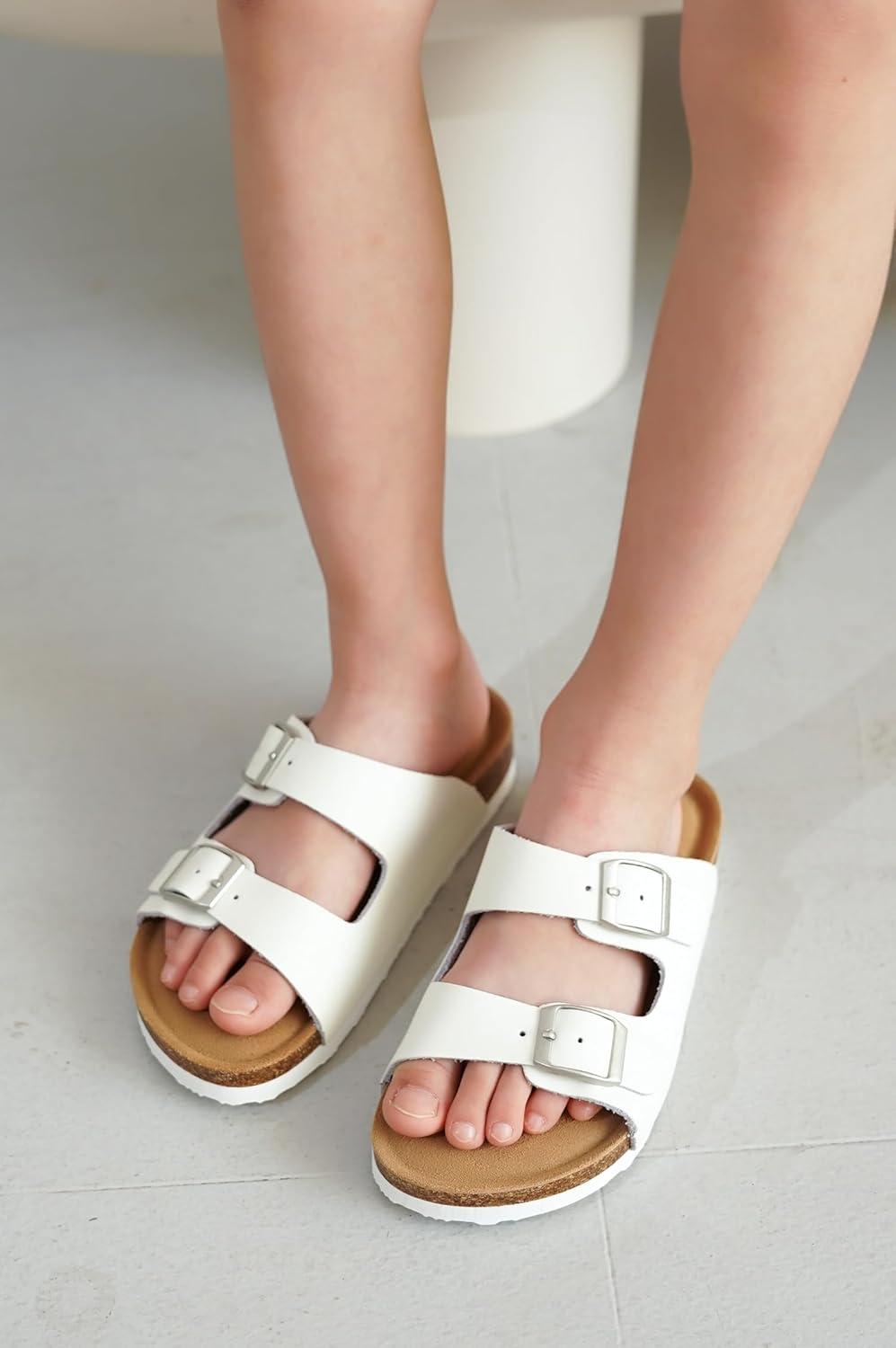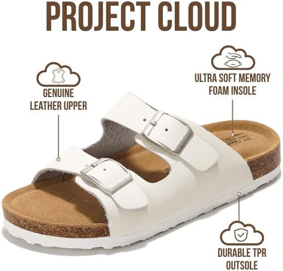 Project Cloud Genuine Leather Slides For Kids – Natural Cork Footbed Slides for Kids Sandals for Girls & Boys – Non-Slip Boys & Girls Sandals(White)