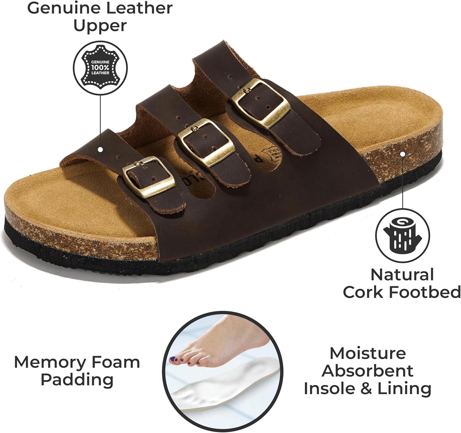 Project Cloud Genuine Leather Summer Sandals for Women 2025 – Memory Foam & Cork Footbed Beach Vacation Essentials Womens Sandals Comfortable Lightweight Slides for Women Footwear (Capri)(Brown)