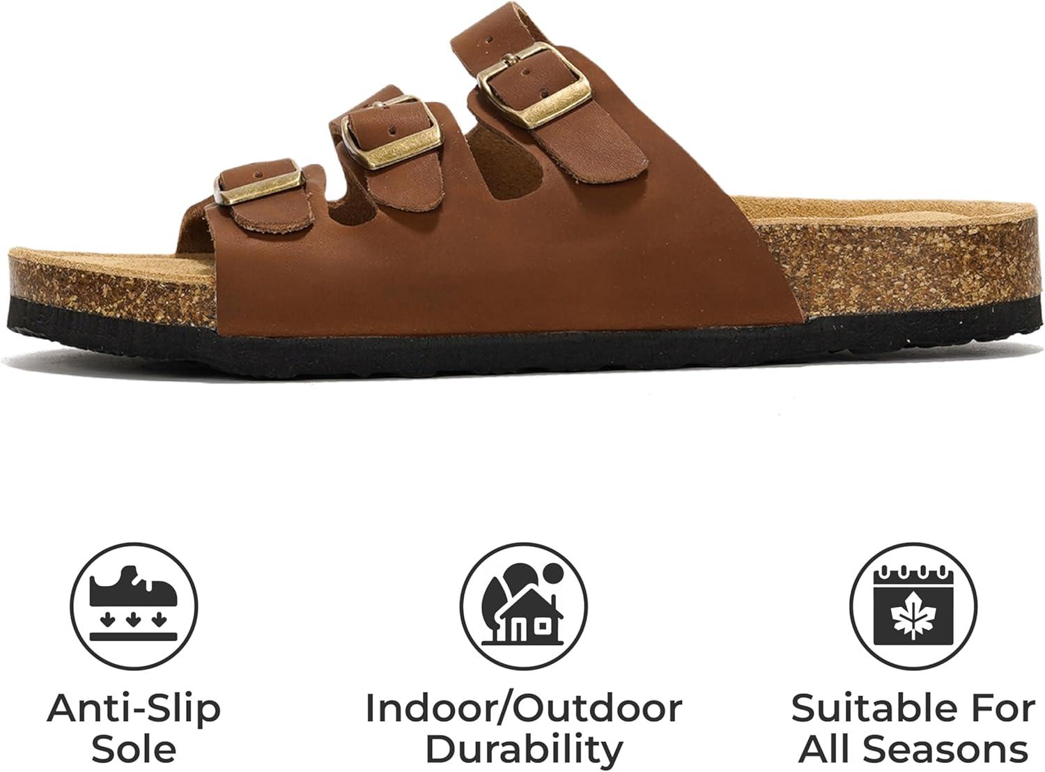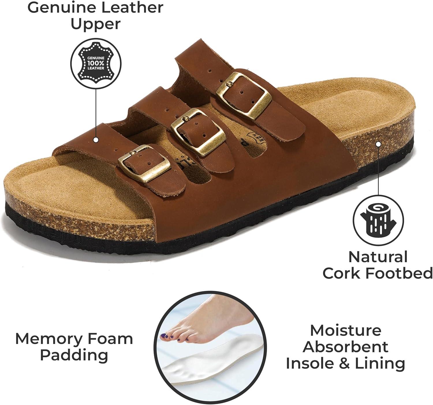 Project Cloud Genuine Leather Summer Sandals for Women 2025 – Memory Foam & Cork Footbed Beach Vacation Essentials Womens Sandals Comfortable Lightweight Slides for Women Footwear (Capri)(Cognac)