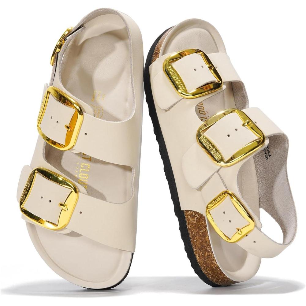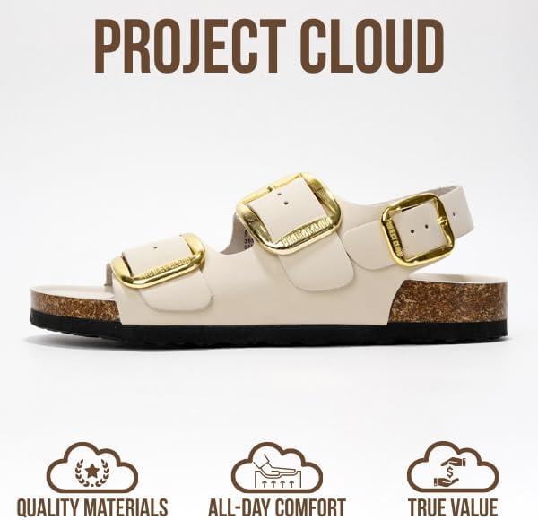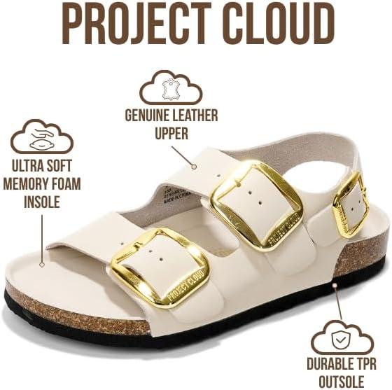 Project Cloud Genuine Leather Summer Sandals for Women 2025 – Memory Foam Slingback Womens Sandals Comfortable and Non Slip Beach Slides with Big Buckle (Garda)(Beige)