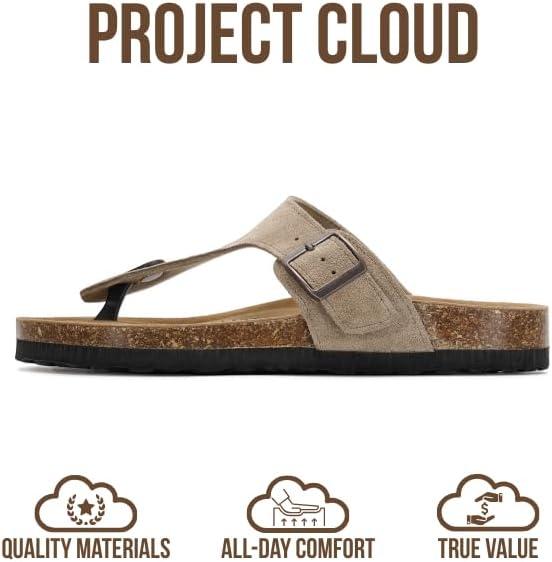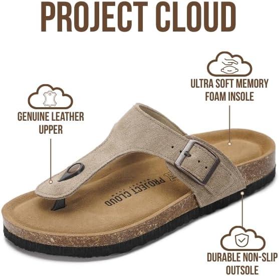 Project Cloud Genuine Leather Thong Sandals Women Water-Resistant Beach Essentials Womens Sandals – Flip Flops for Women Footwear Memory Foam Insole Womens Slides (Britani)(Taupe Suede)