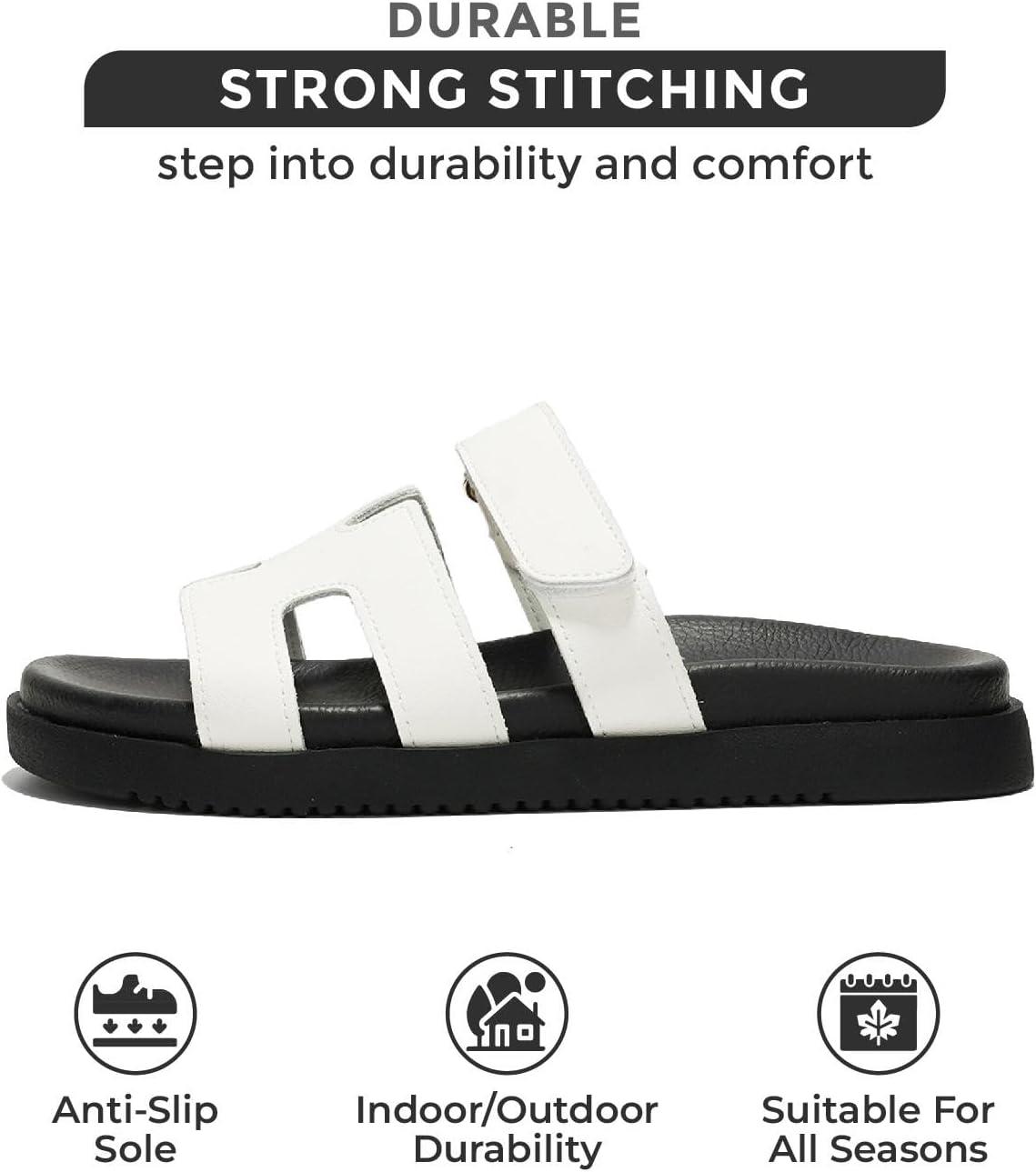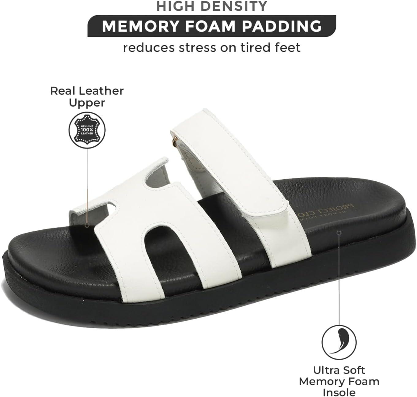 Project Cloud Genuine Leather Womens Sandals – Stylish & Comfy Sandals for Women Footwear with Memory Foam Insole – Slip-Resistant Slides for Women (Mayven)(White)